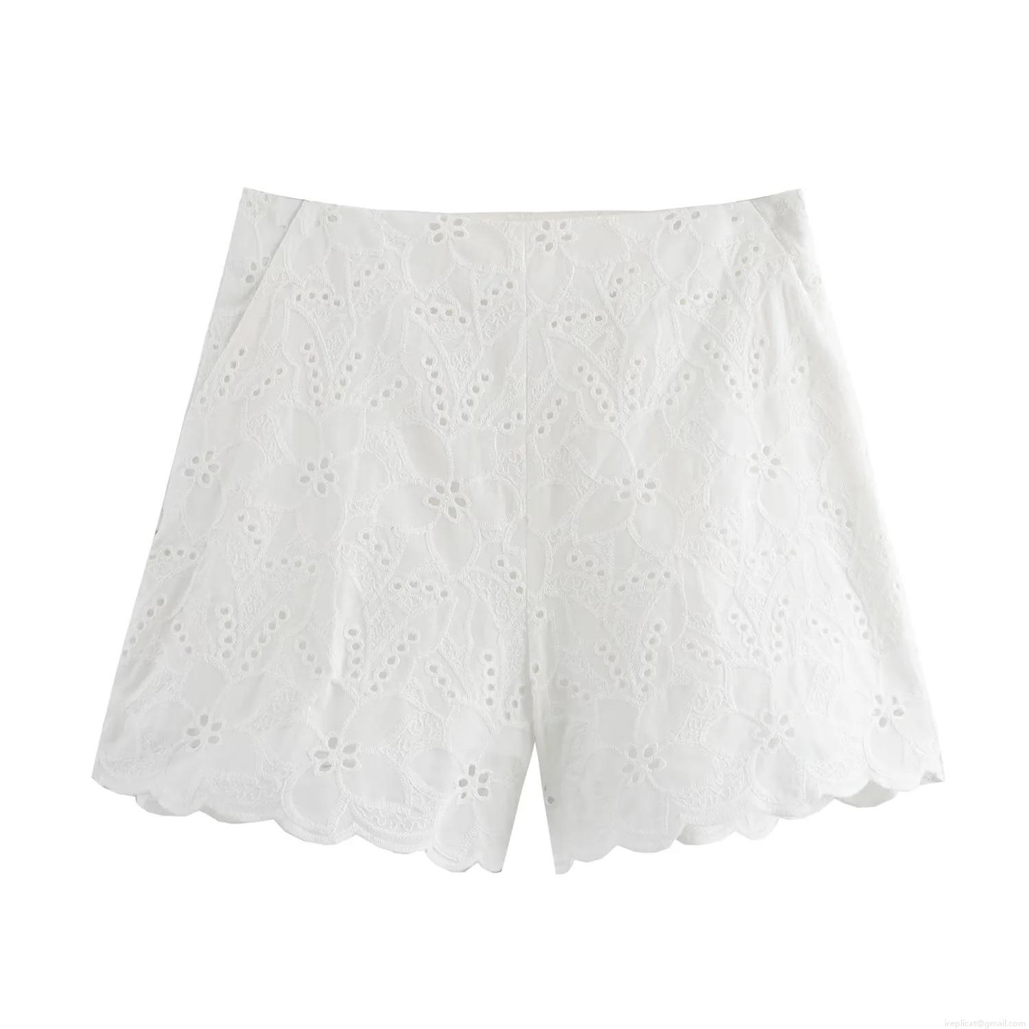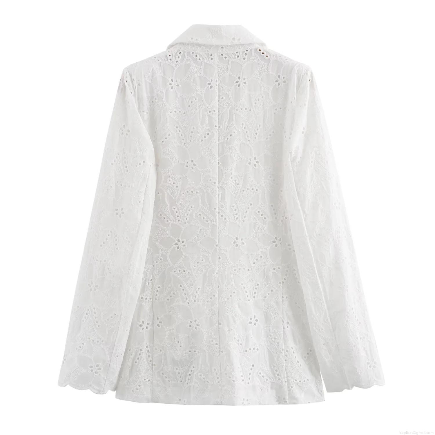 • Women's Hollow Out Eyelet Embroidery Blazer Jacket And Shorts Two Piece Set Sexy White Long Sleeve Single Button Suit Coat Casual High Waist Shorts Elegant Streetwear Outfit