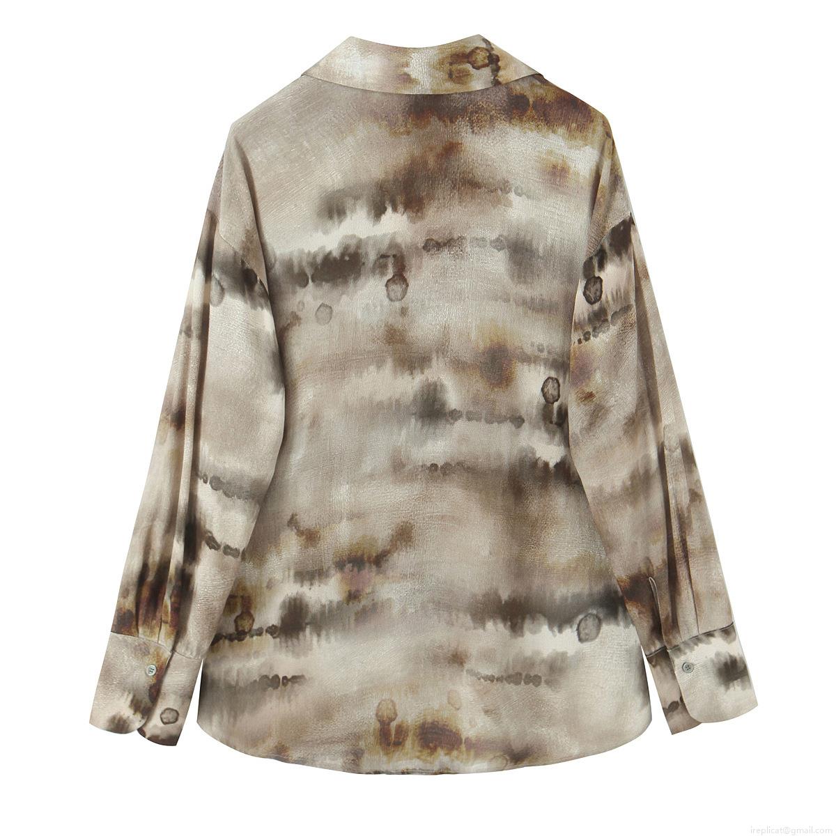 • Women's Ink Marble Print 2 Piece Sets Chiffon Feel Long Sleeve Button Up Shirt And Elastic Waist Wide Leg Pants Casual Streetwear Outfits For Women