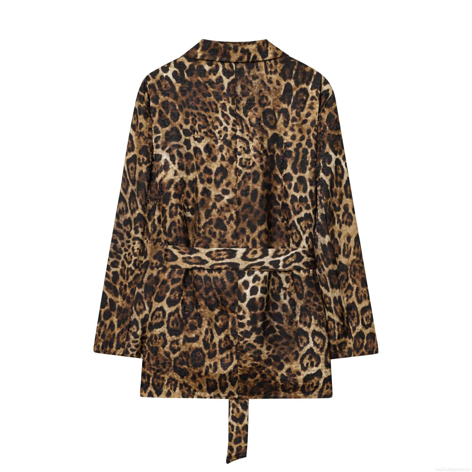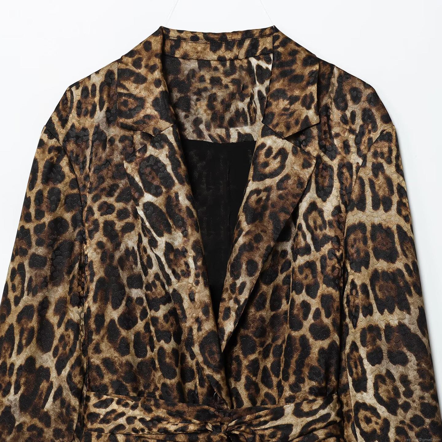 • Women's Leopard Print Blazer Set Jacquard Satin Long Sleeve Tie-Waist Jacket and Wide Leg Pants Two-Piece Outfits For Office Party Streetwear