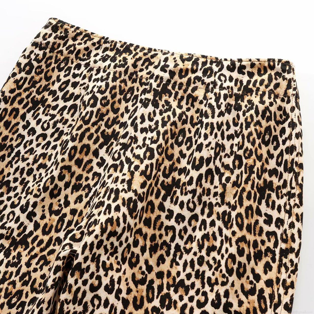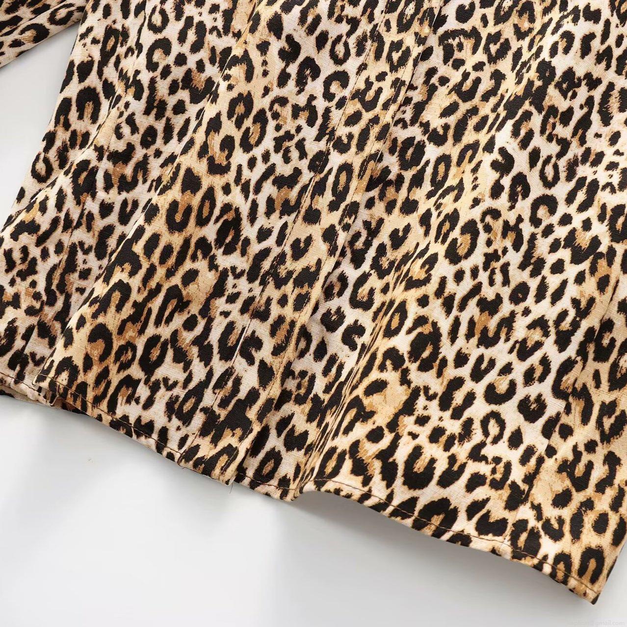 • Women's Leopard Print Two Piece Set Casual Long Sleeve Shirt and Straight Leg Pants Polyester Woven Lounge Outfits for Daily Streetwear Fashion