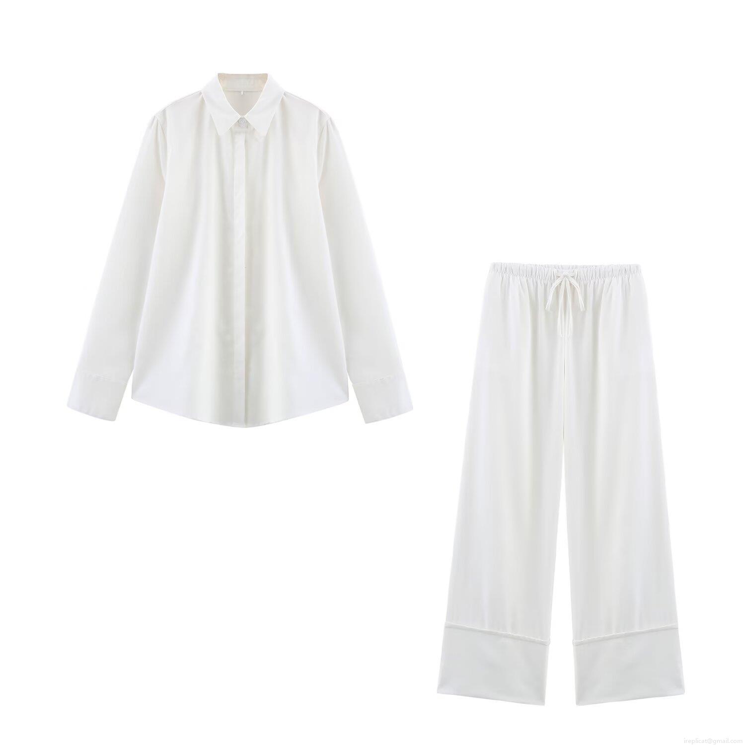 • Women's Linen Blend Two Piece Set Long Sleeve Lapel Shirt And High Waist Drawstring Wide Leg Pants Solid Color Casual Loose Streetwear Outfit