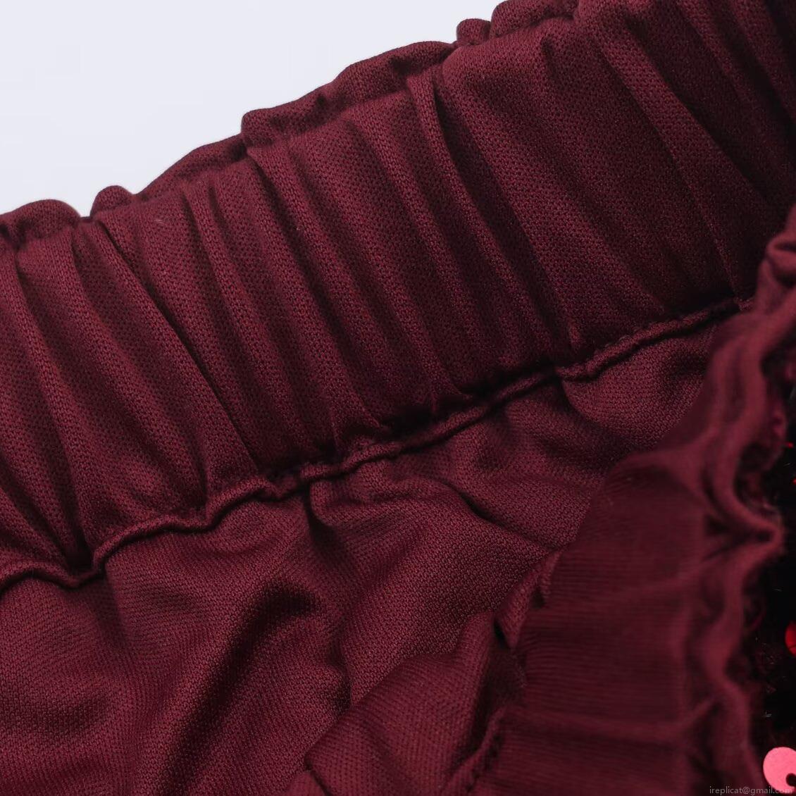 • Women's Luxury Wine Red Sequin Sleeveless Top And Straight Pants Set Elegant Faux Fur Hem Two Piece Outfits For Party Evening Celebration