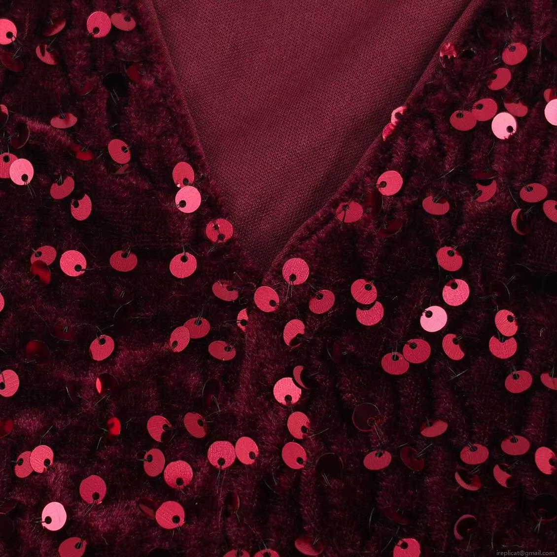 Solid Color, Sequin, V-neck, Raw Edge Decoration