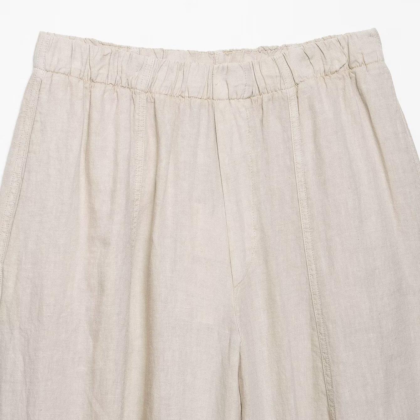 Solid Color, Elastic Waistband, Stand-up Collar, Wide-leg, Double-breasted, Linen Texture