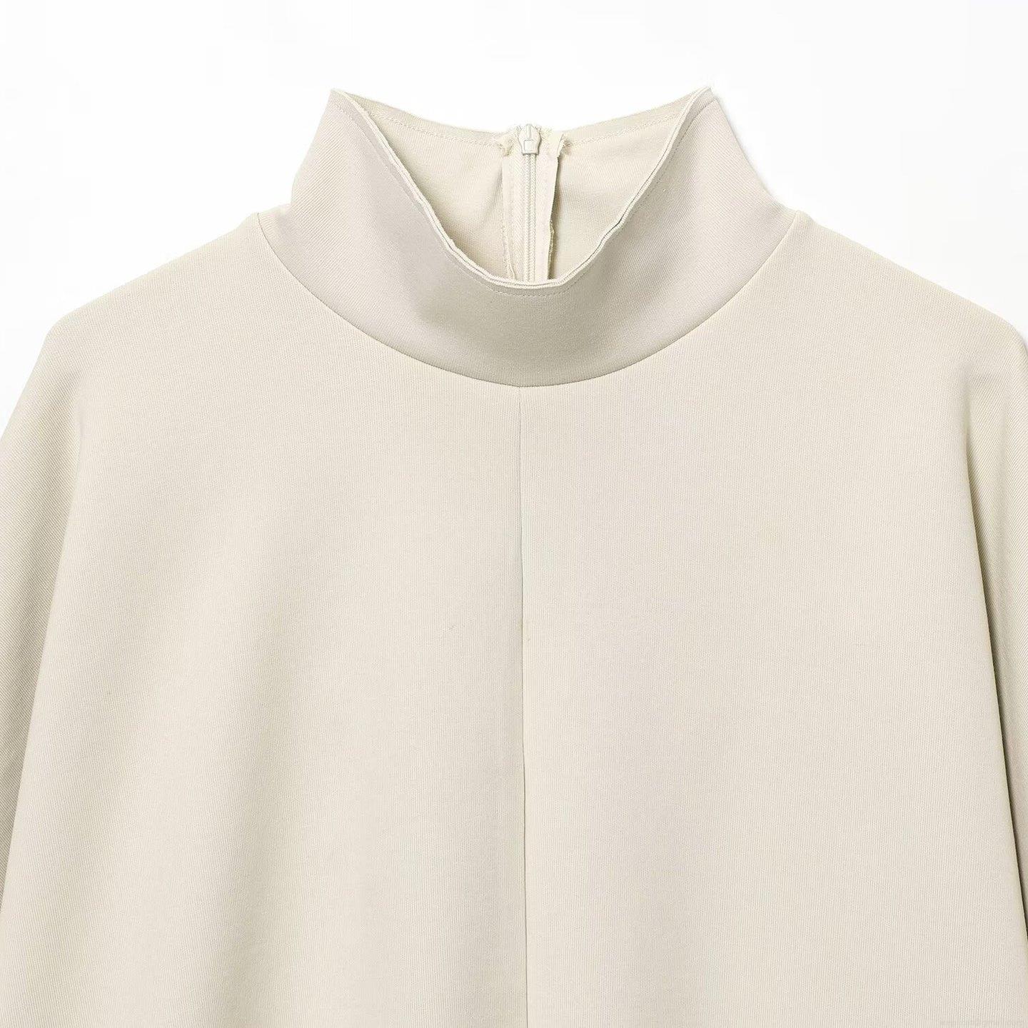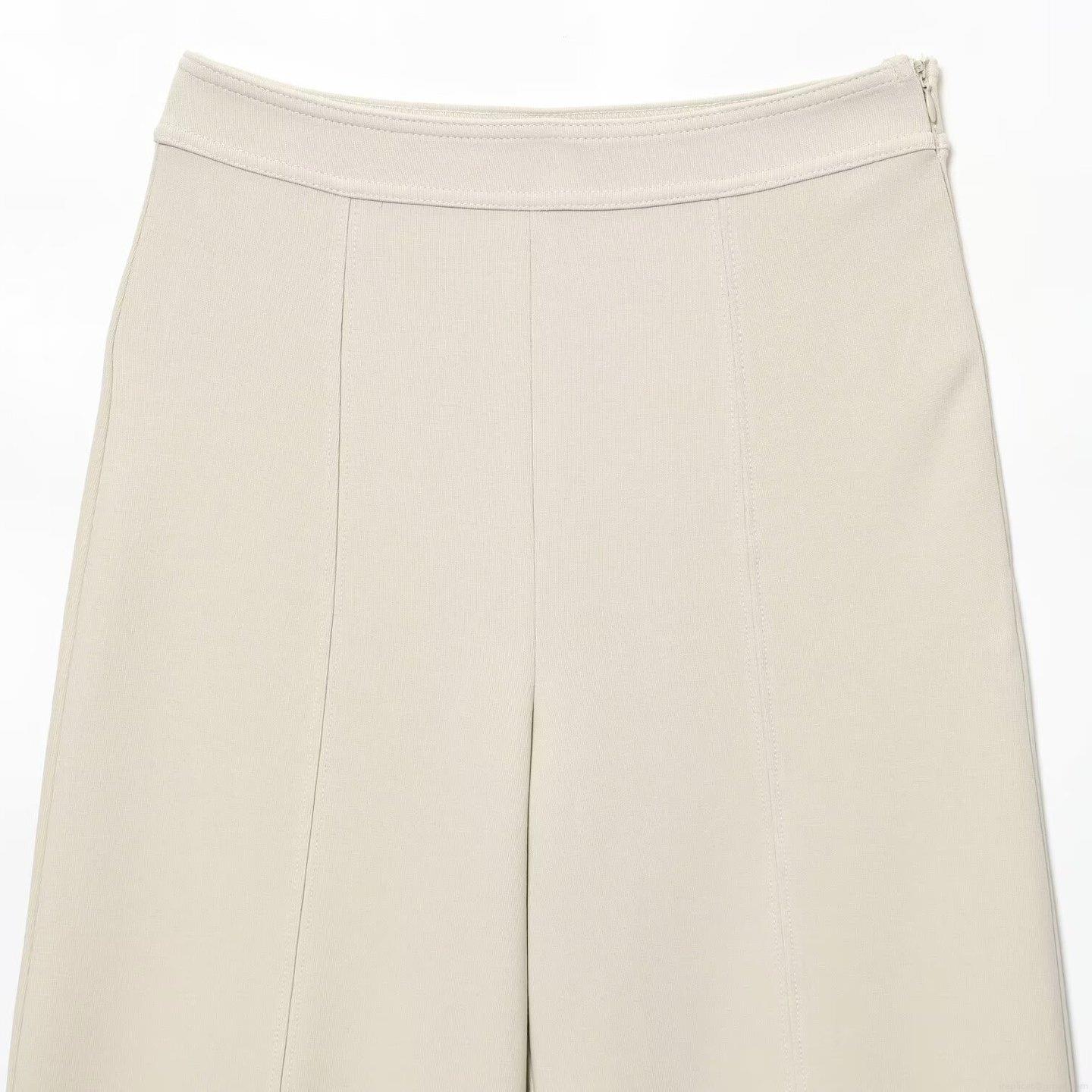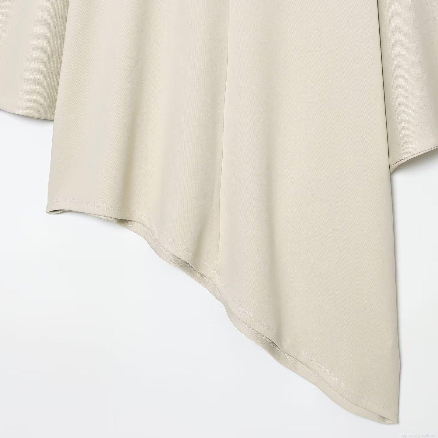 • Women's Minimalist Two Piece Set Asymmetrical Hem Half High Collar Top And High Waist Wide Leg Pants Beige Cream Thick Twill Casual Lounge Outfit Suit