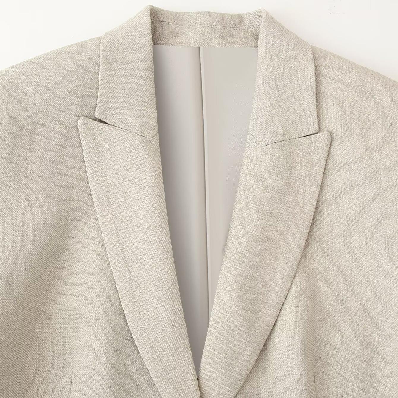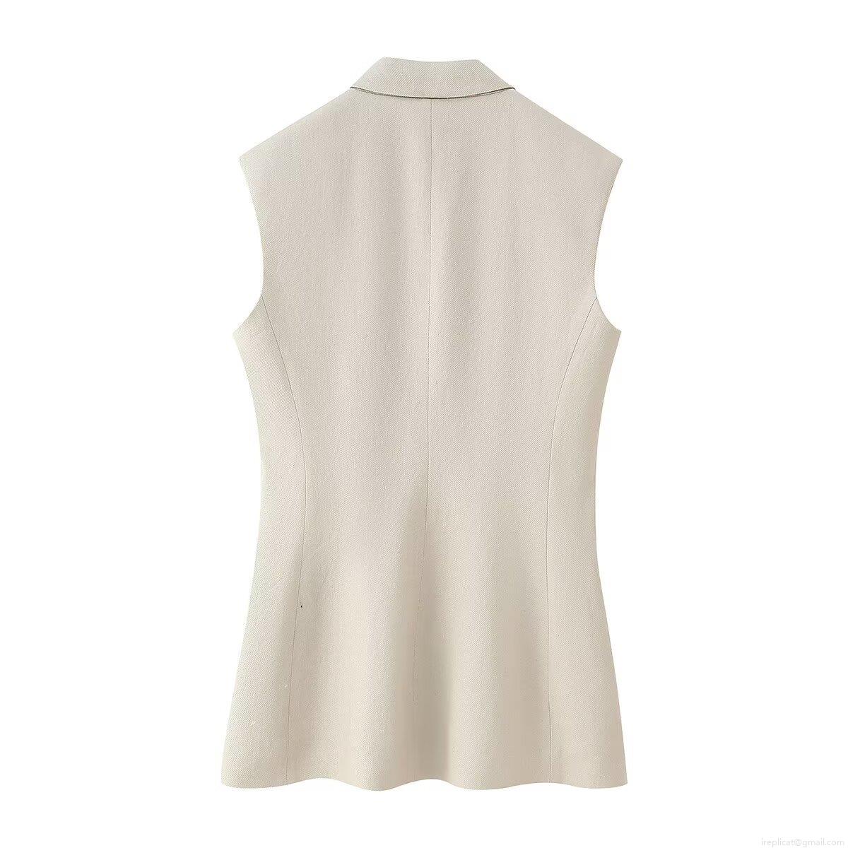 • Women's Minimalist Two-Piece Set Sleeveless Shoulder Pad Blazer Vest And High Waist Wide Leg Pleated Pants Office Commute Khaki Woven Suit