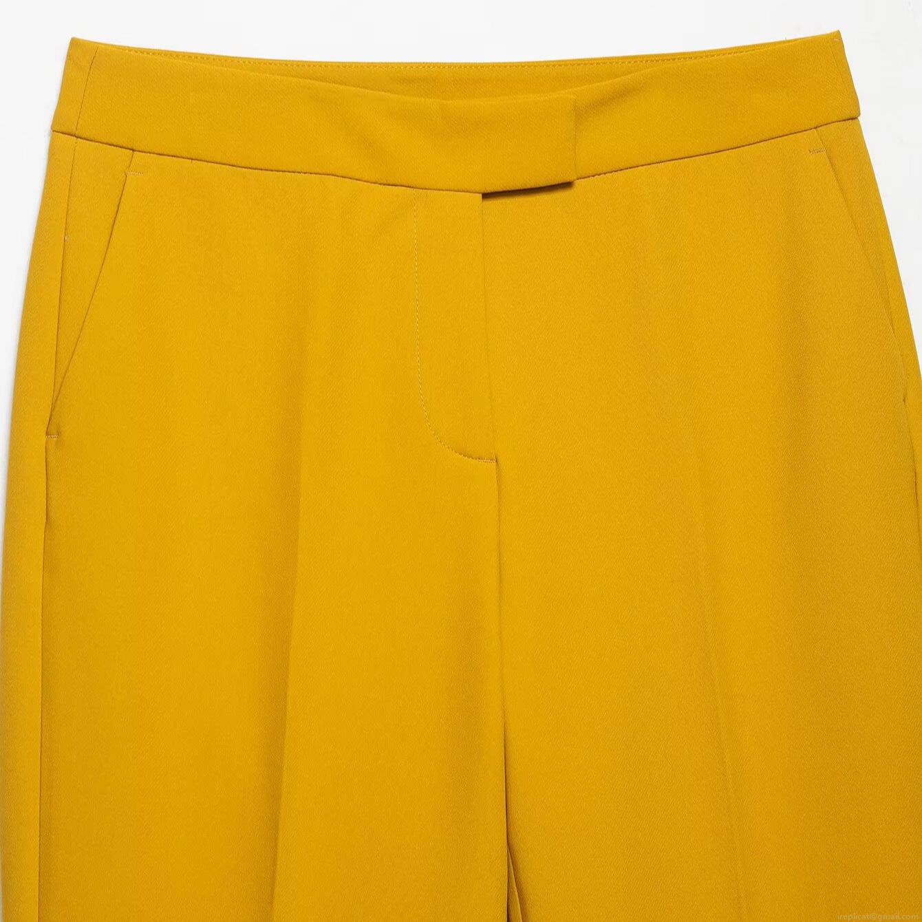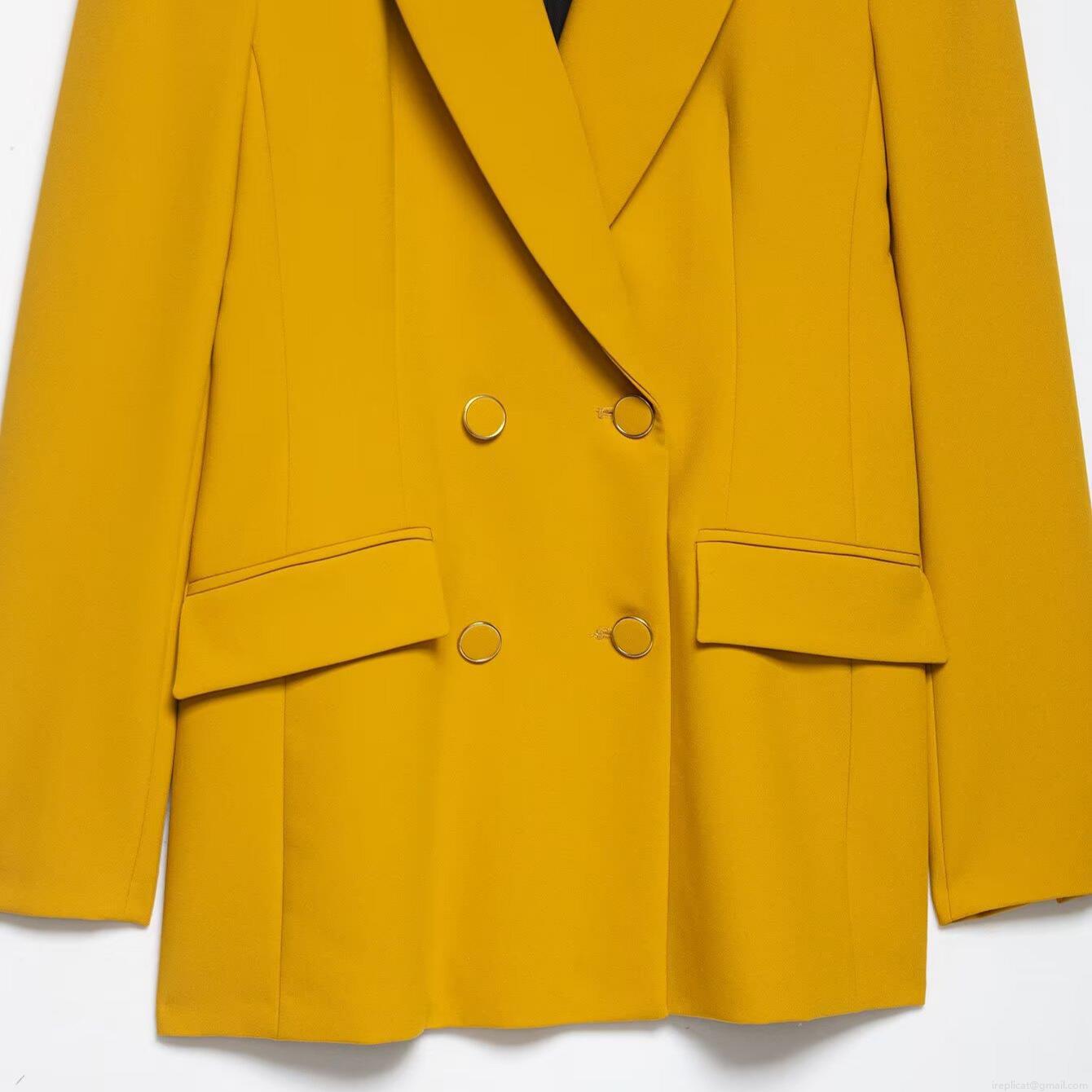 • Women's Mustard Yellow Woven Blazer Suit Set Double Breasted Professional Office Jacket And High Waist Straight Leg Pants Two Piece Outfit