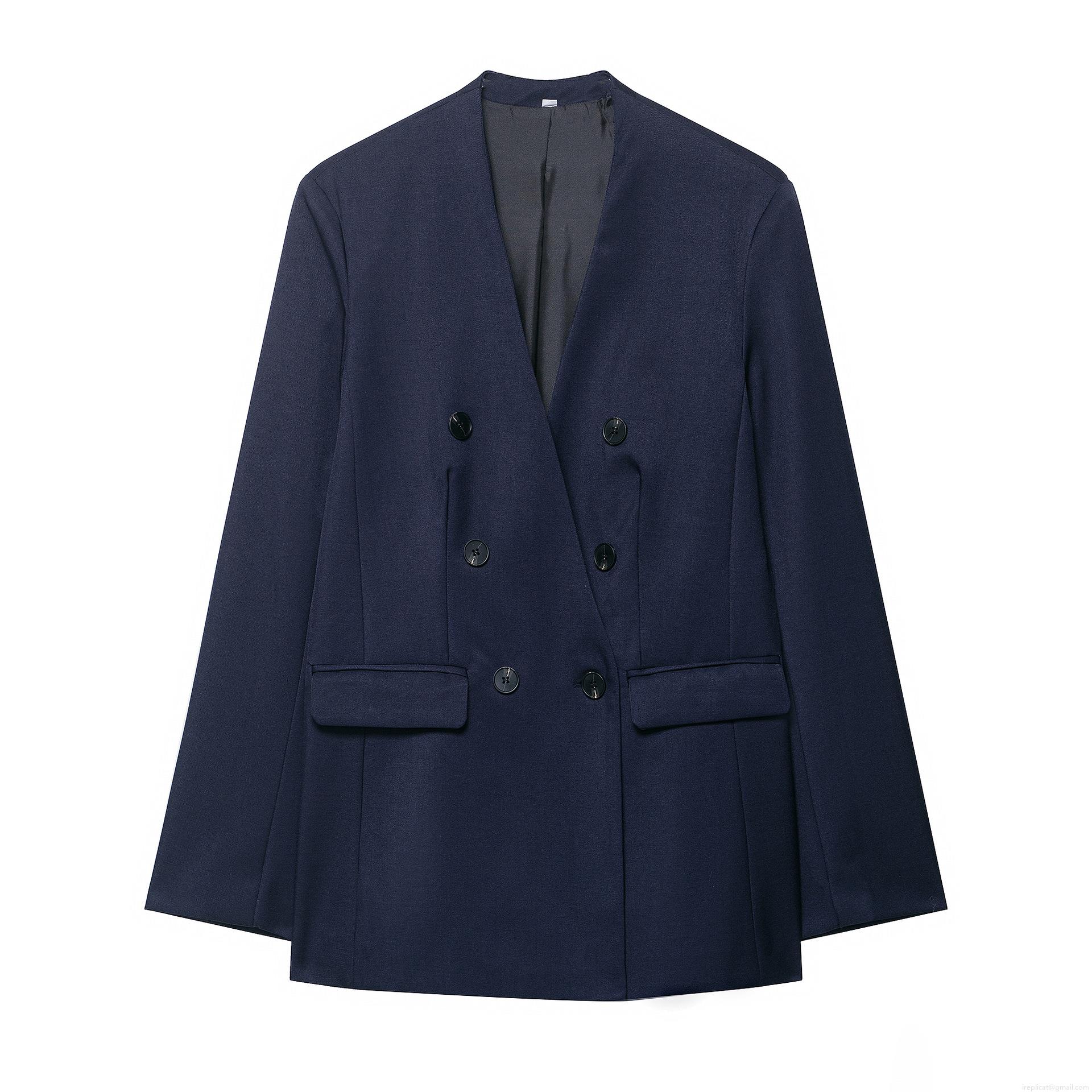 Solid Color, Double-breasted, Straight Cylindrical Profile, Collarless Design