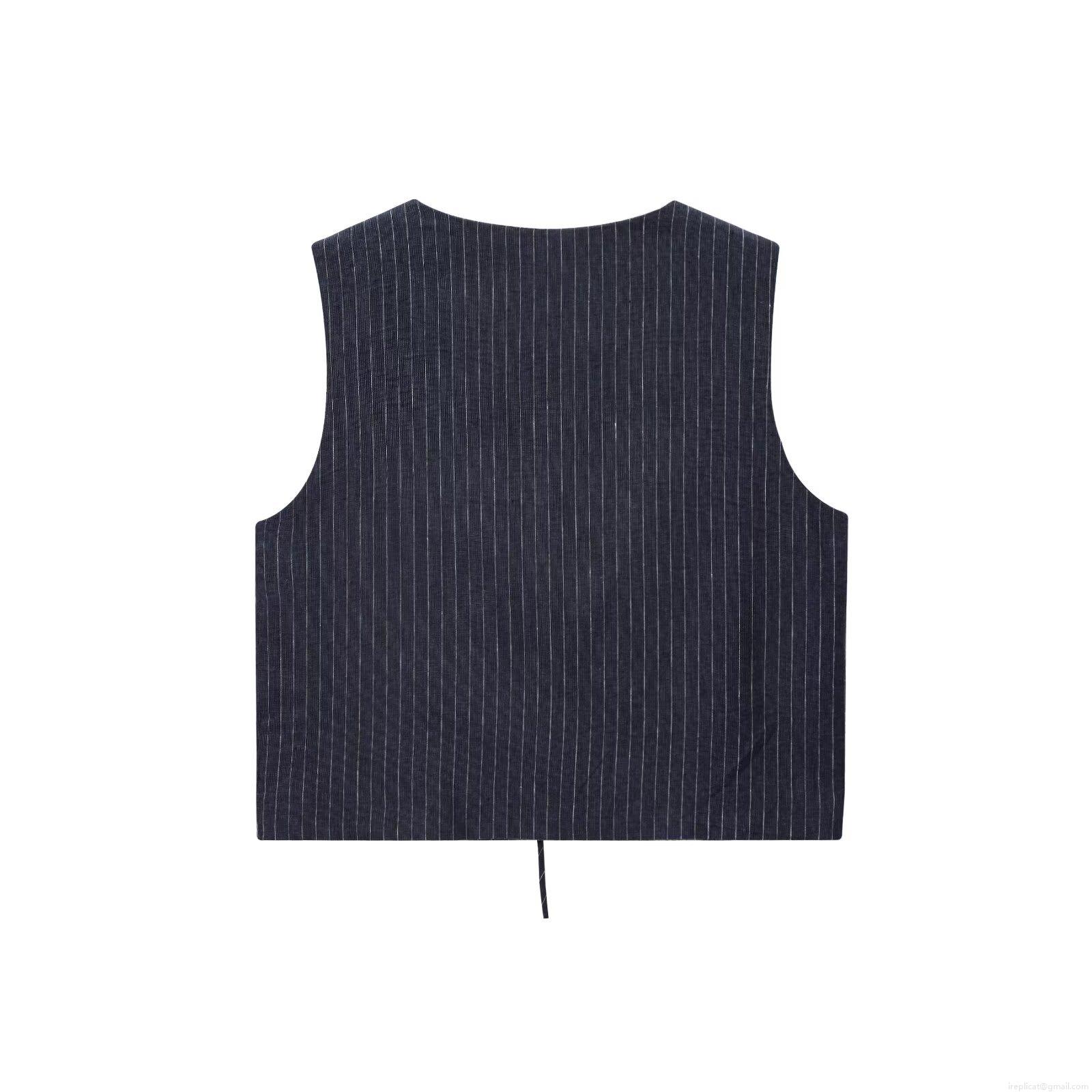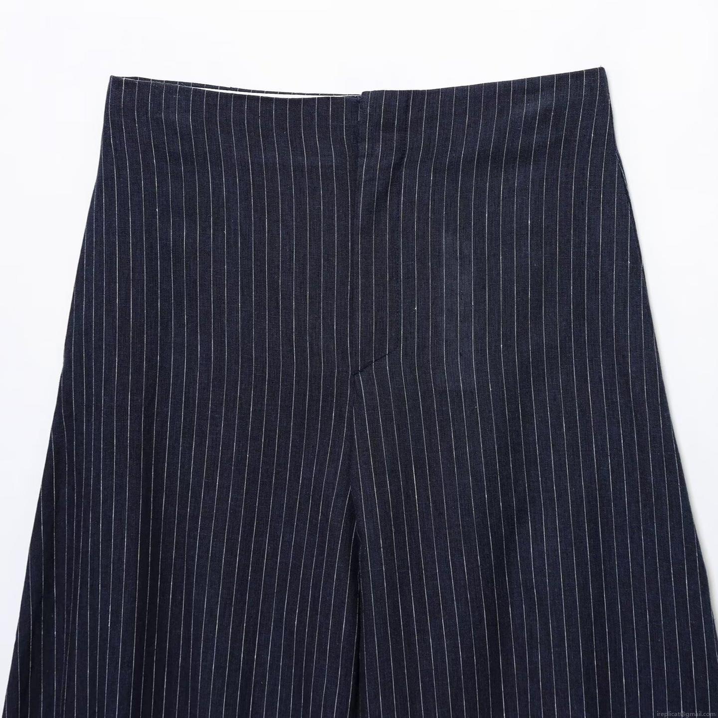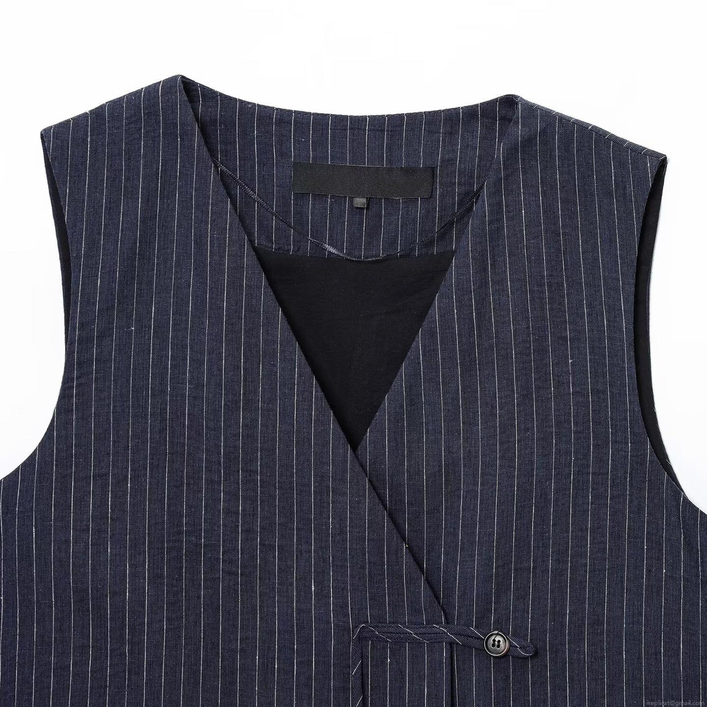 • Women's Navy Blue Striped Vest and Wide Leg Pants Two Piece Set Elegant Sleeveless Top and High Waist Trousers Commuter Outfits