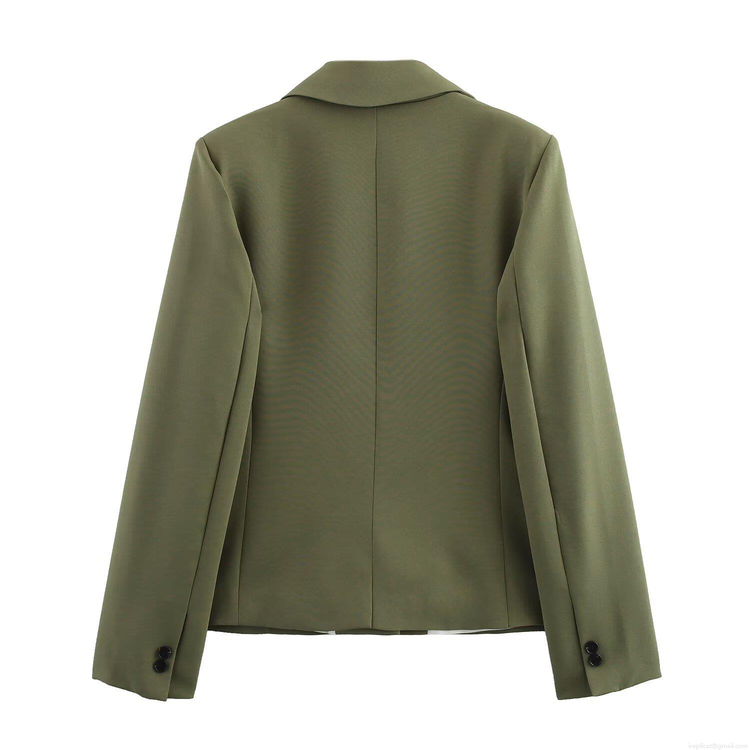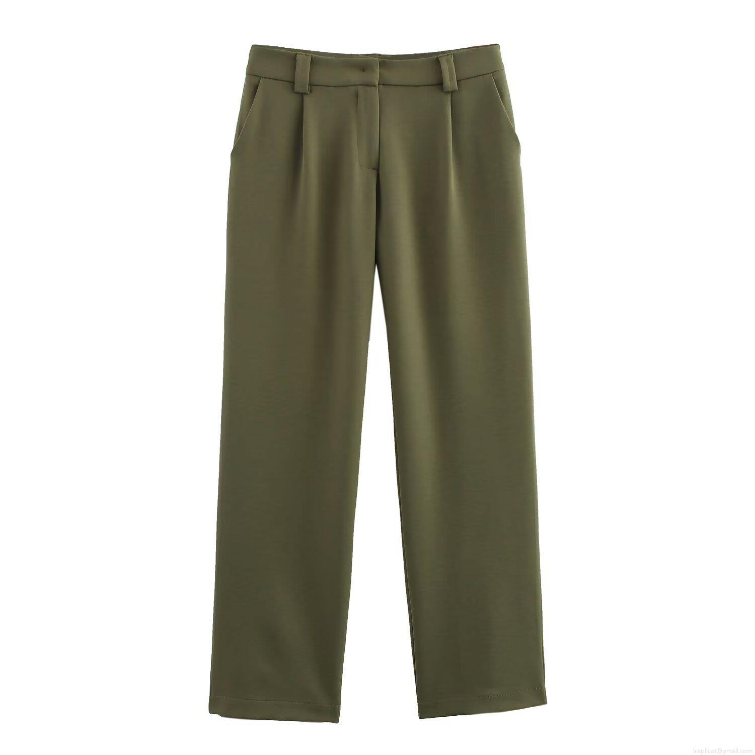 Women's Olive Green Blazer and Straight Leg Pants Set Two Piece Office Lady Business Suit Elegant European Style Professional Workwear Outfit