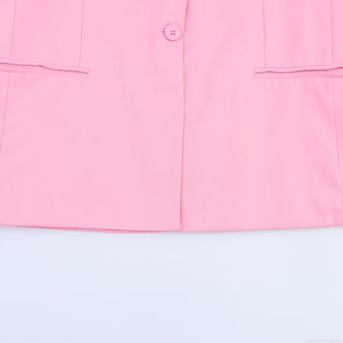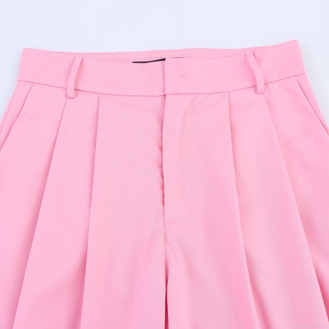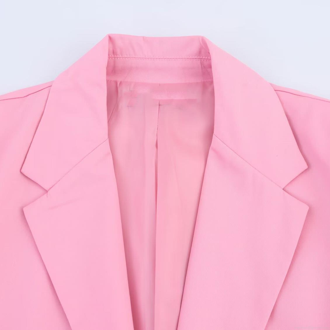 • Women's Pink Blazer and Wide Leg Pants Two Piece Set Elegant Lapel Single Breasted Loose Suit Jacket and High Waist Trousers for Office Commute Lady