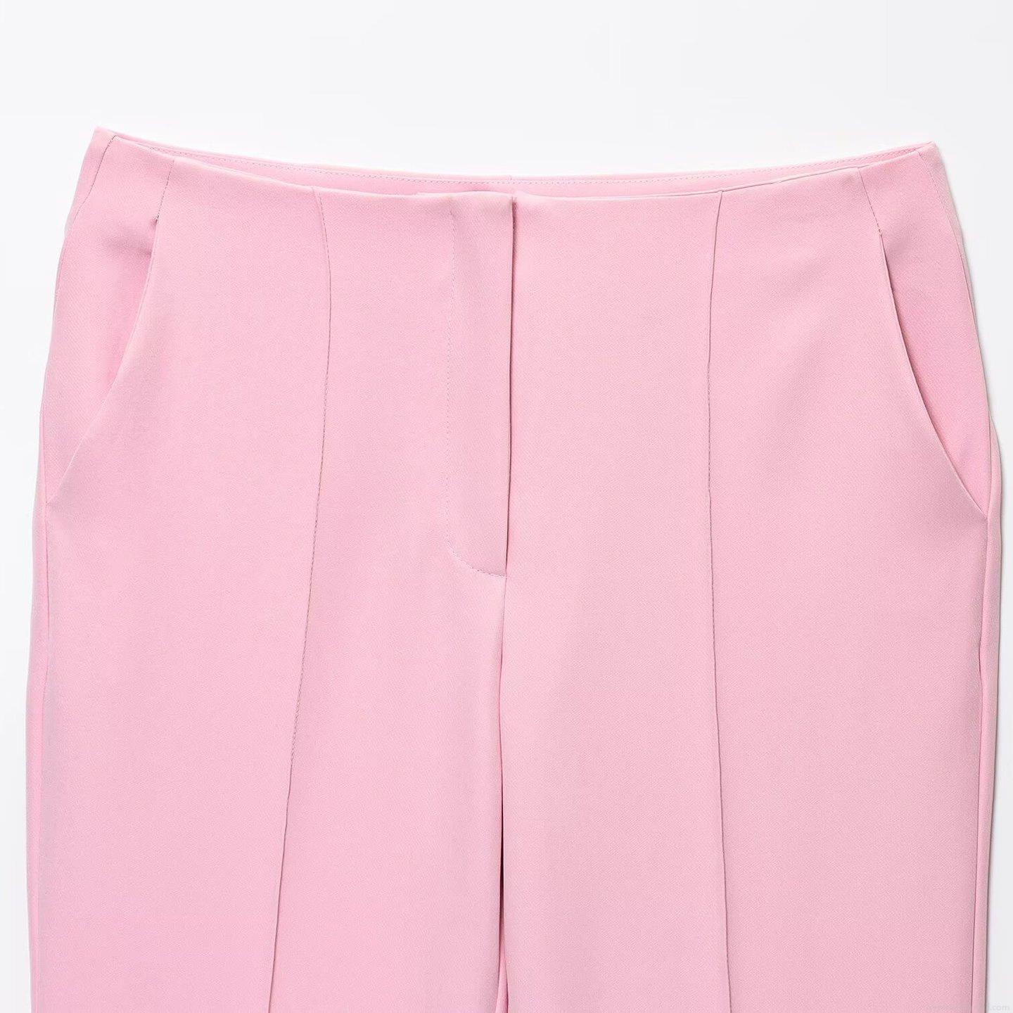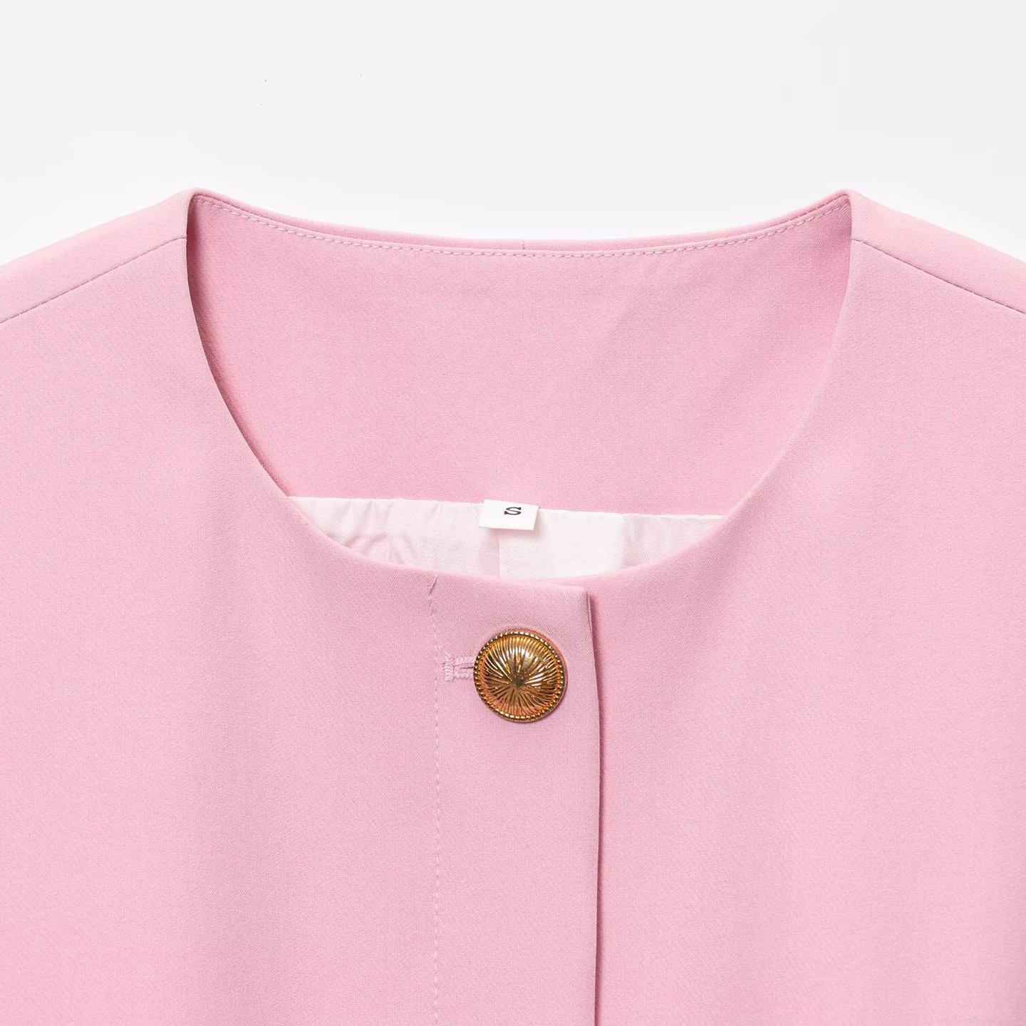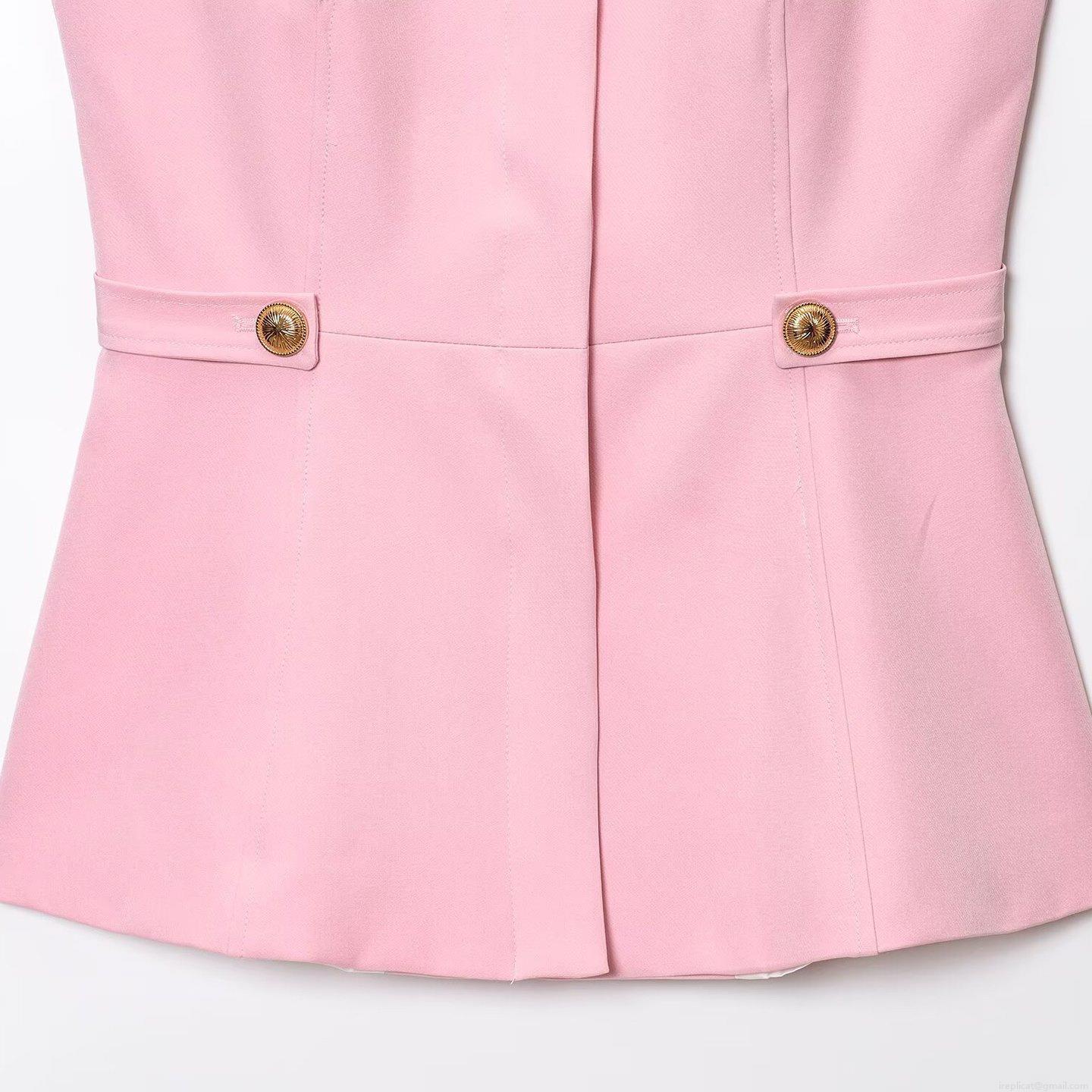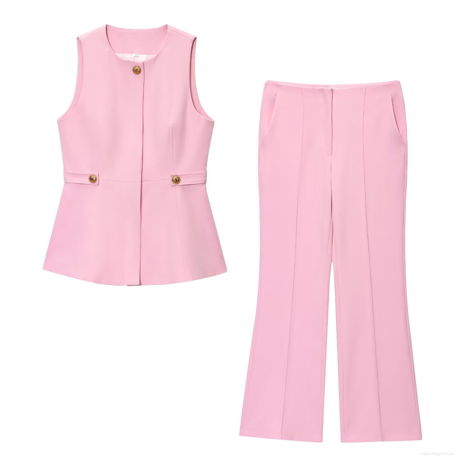 • Women's Pink Two Piece Set Sleeveless Peplum Vest Top With Gold Buttons And High Waisted Flare Leg Pants Elegant Commute Summer Slim Suit For Lady