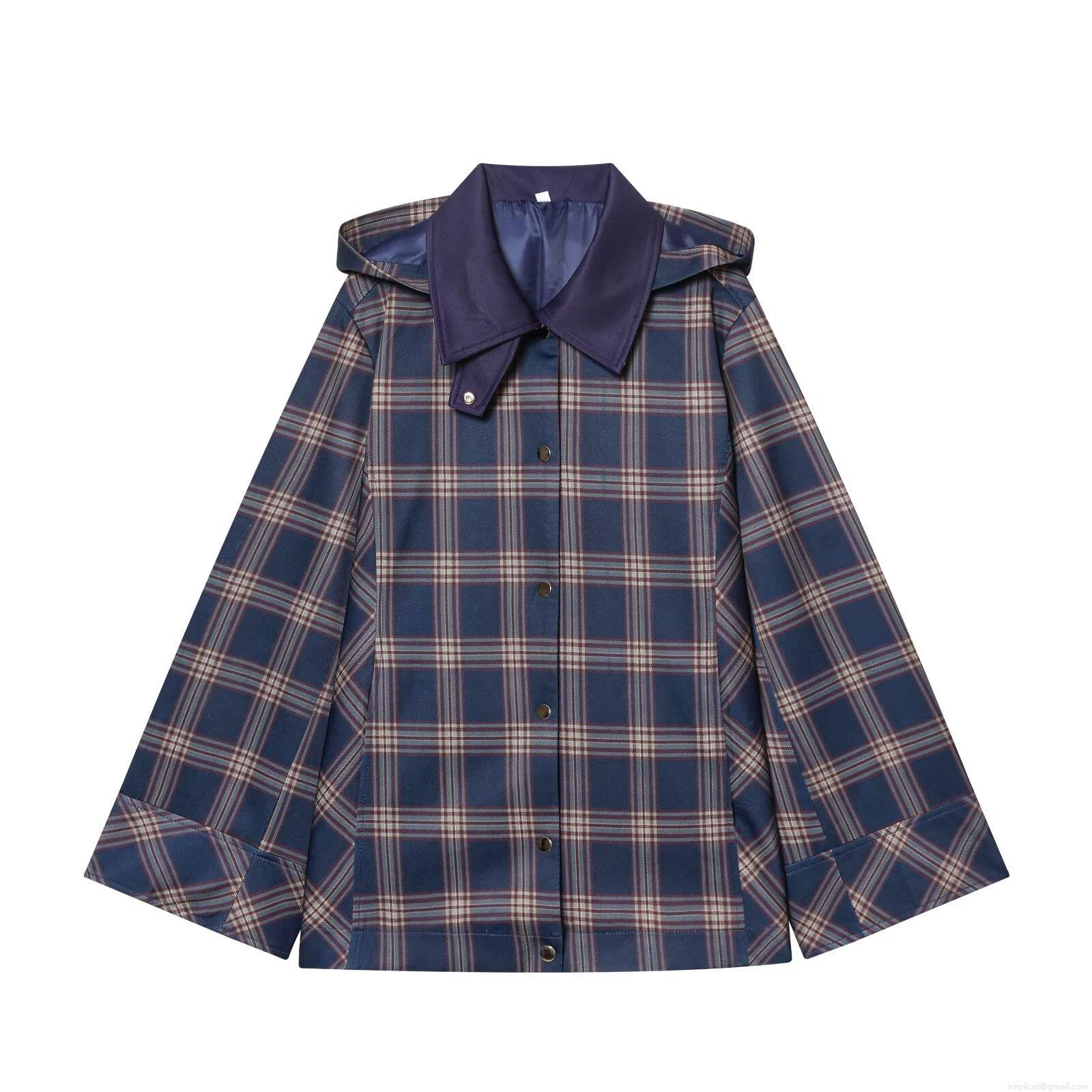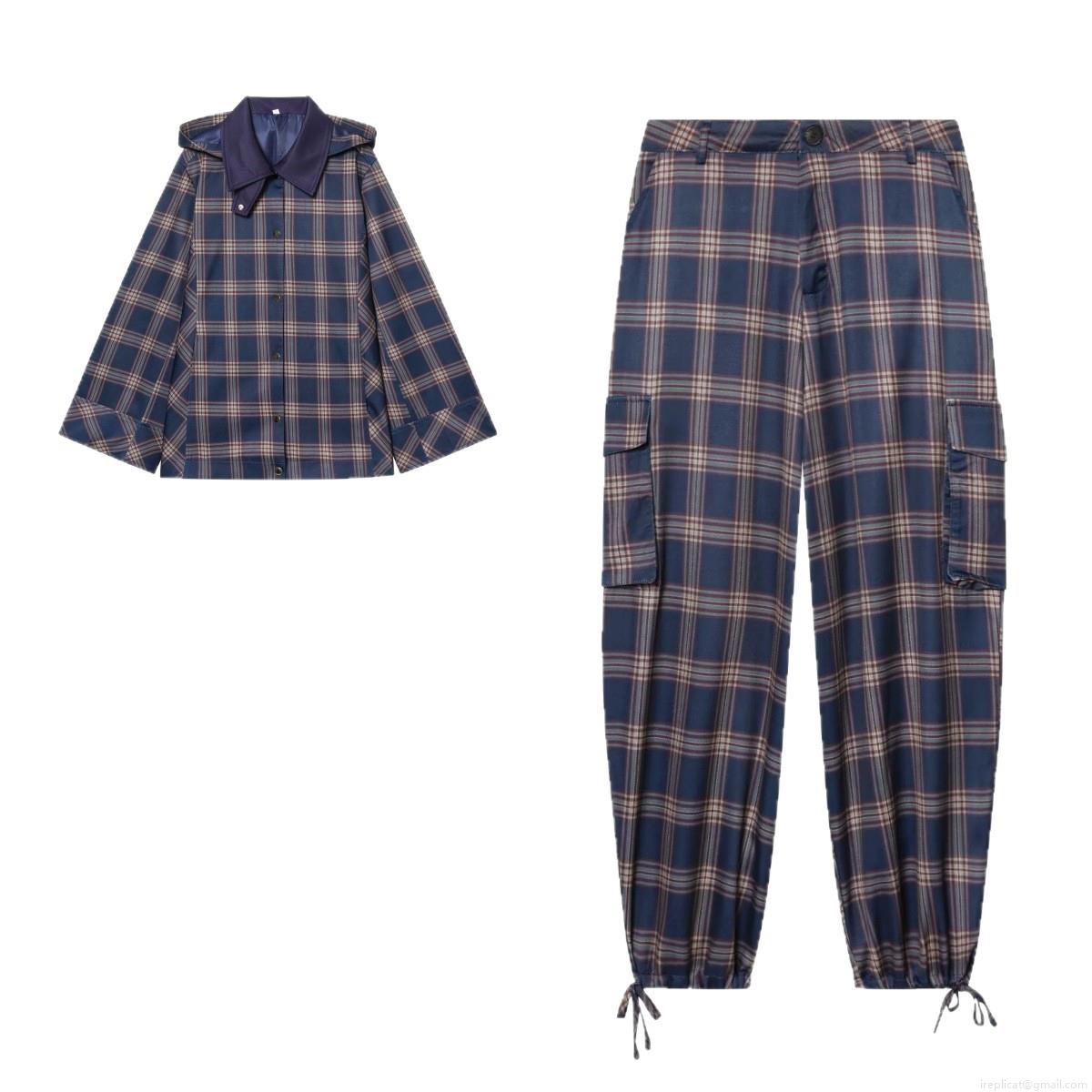 Women's Plaid 2 Piece Outfits Hooded Button Up Jacket And Cargo Pants Set Streetwear Casual Polyester Tracksuit Spring Autumn Clothing