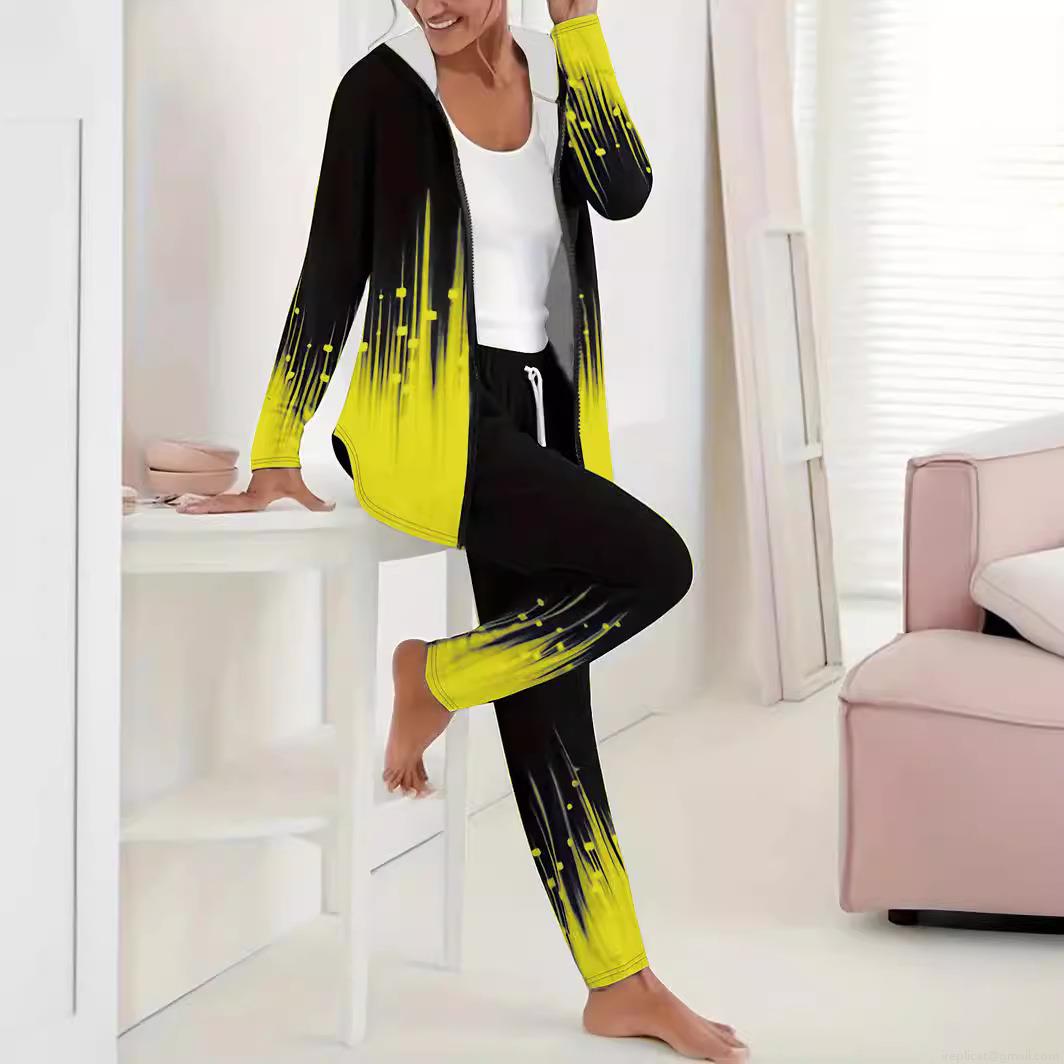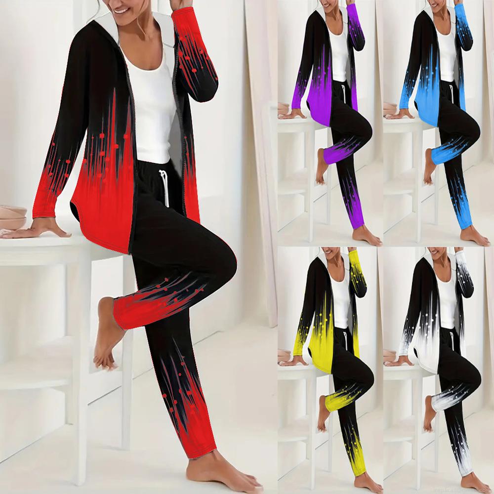 • Women's Plus Size Casual Sports Two-Piece Set 3D Digital Print Hooded Full Zip Jacket And Long Pants Tracksuit Polyester Spandex Blend For Autumn Winter