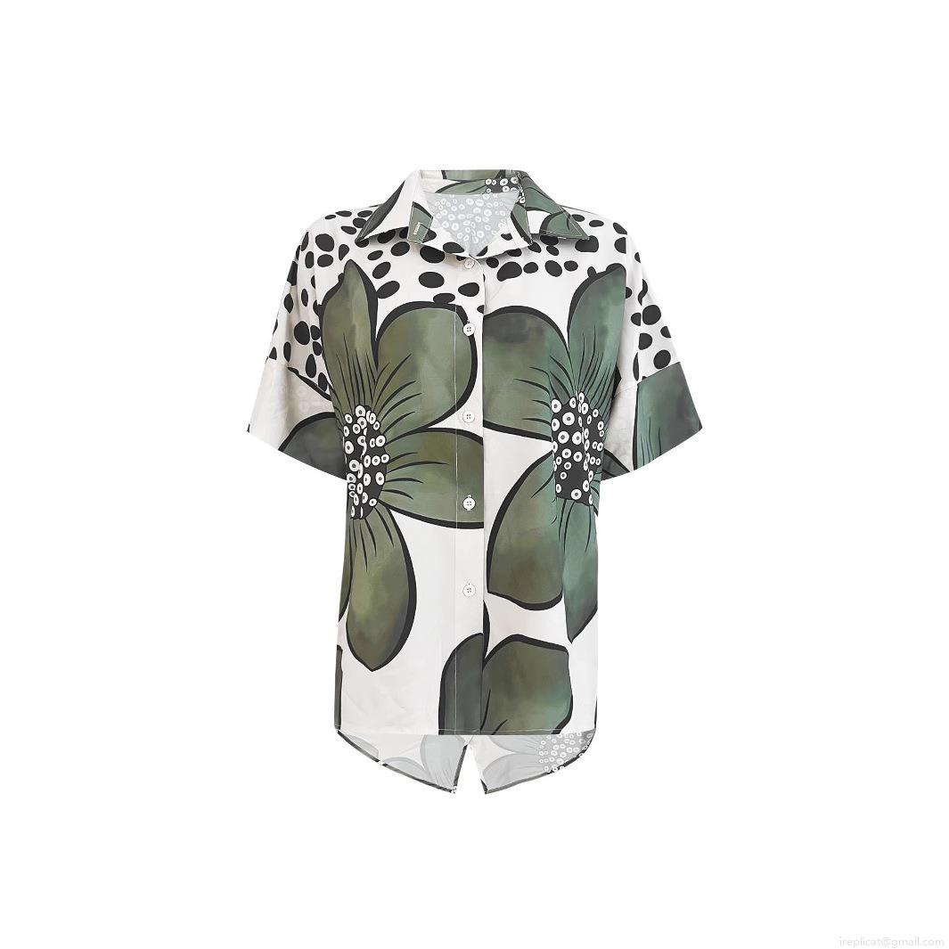 • Women's Plus Size Floral Print Two Piece Set Polyester Spandex Short Sleeve Button Down Shirt And Wide Leg Pants Casual Bohemian Summer Vacation Outfit