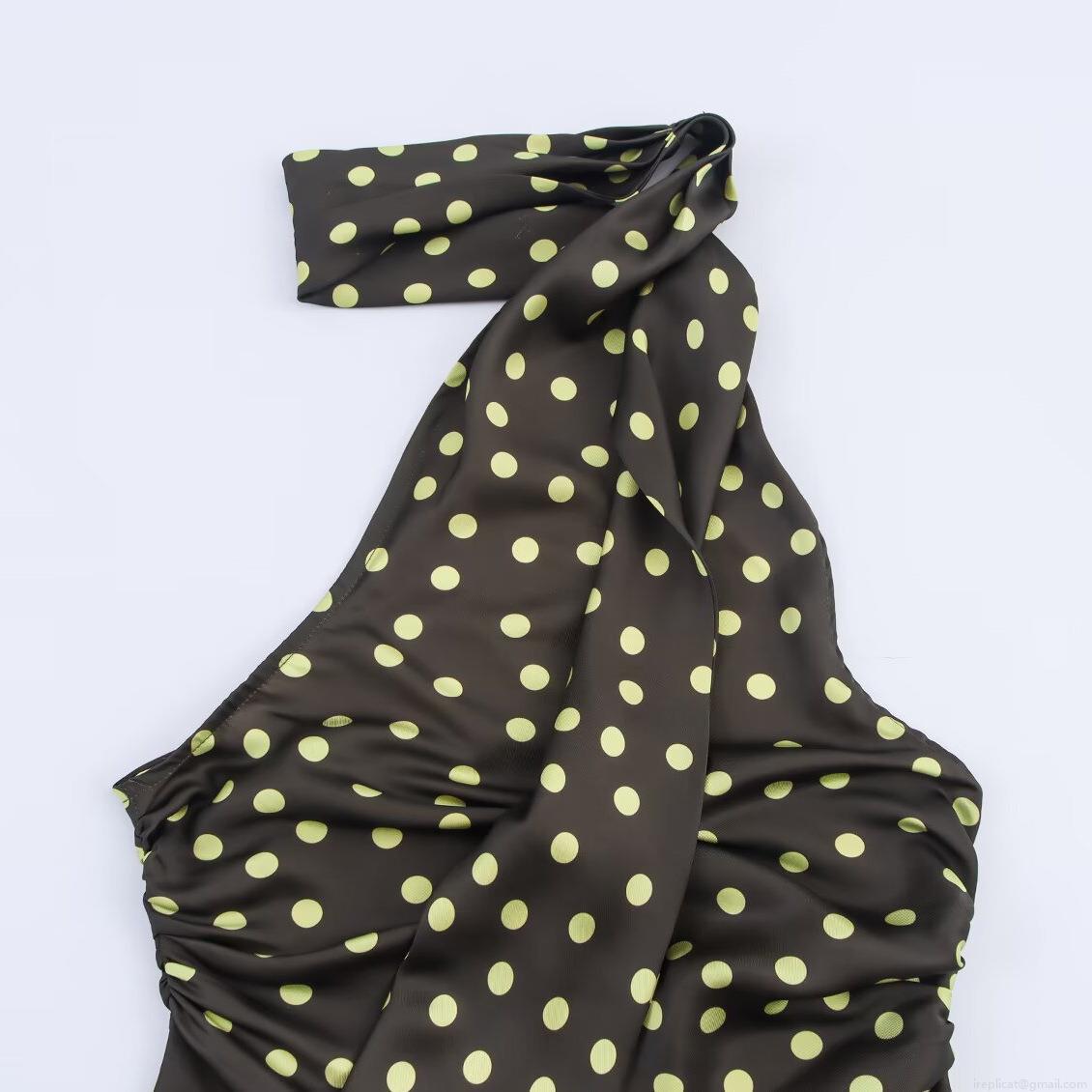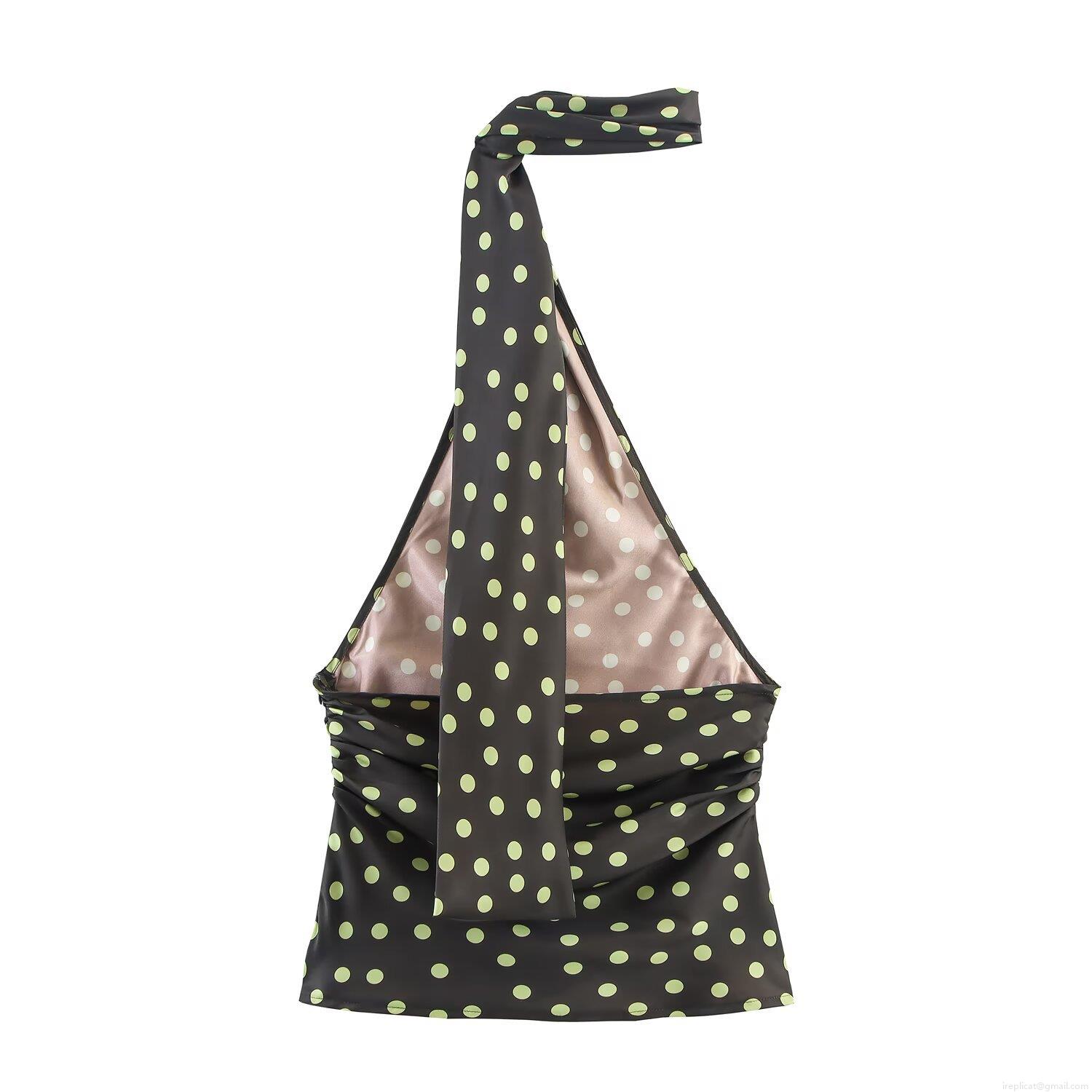 Women's Polka Dot Halter Neck Top And Flared Pants Set Satin Texture Backless Sexy Two Piece Outfits For Daily Party Vacation Chic Summer Autumn Wear