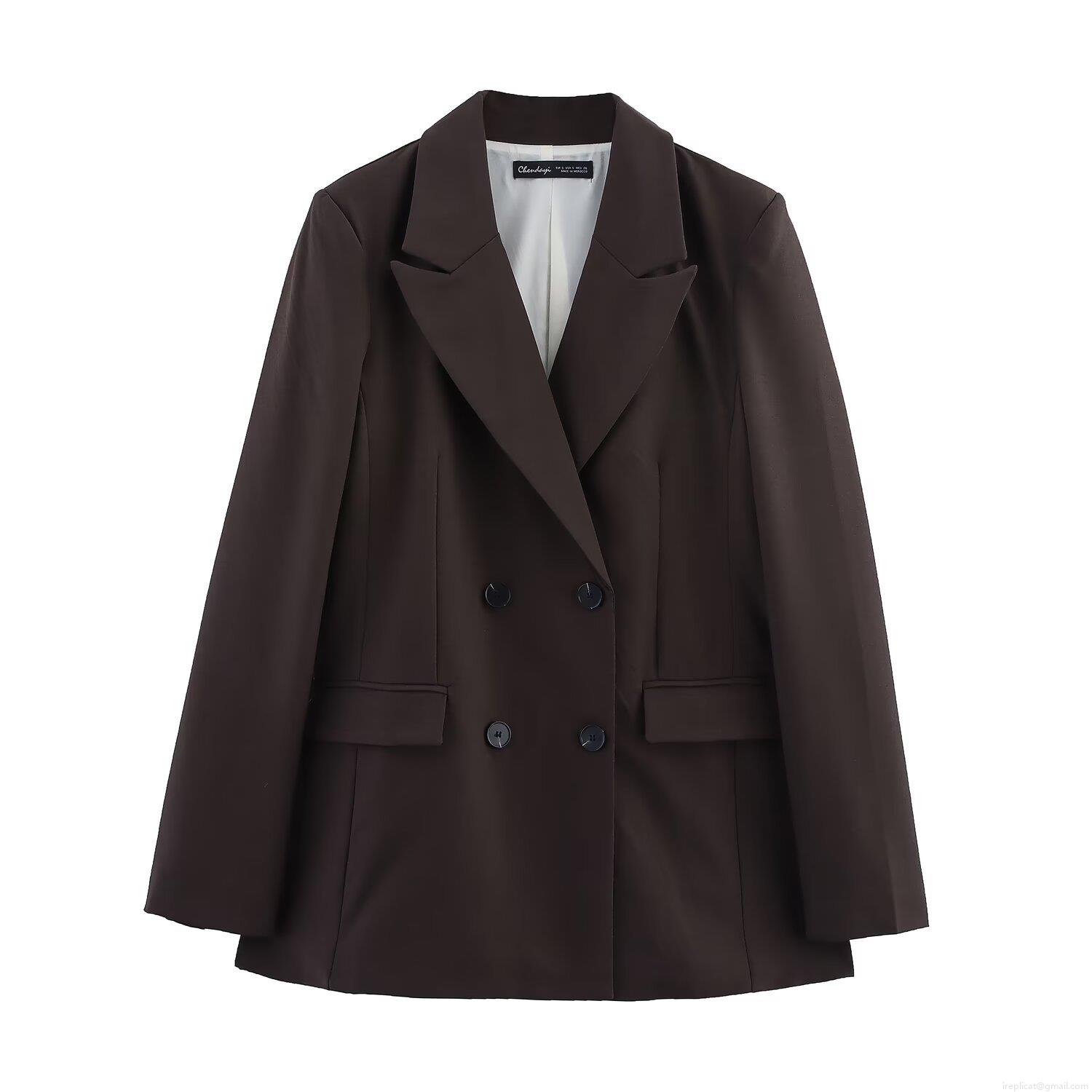 Solid Color, Pocket, Shoulder Pads, Double-breasted, High-waisted