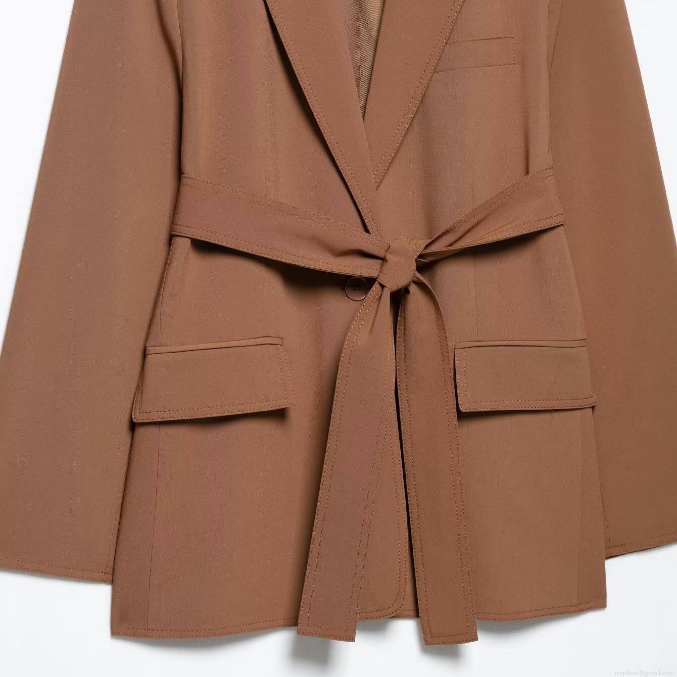 Women's Professional Blazer And Wide Leg Pants Set 100% Polyester Belted Long Sleeve Office Lady Two Piece Suit Commuter Elegant Brown Outfit