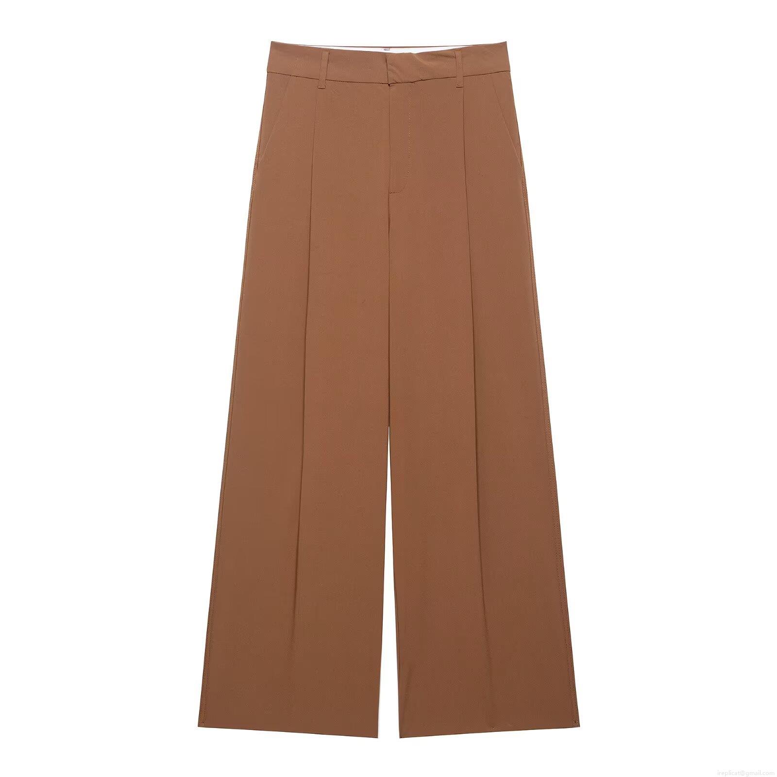 • Women's Professional Blazer And Wide Leg Pants Set 100% Polyester Belted Long Sleeve Office Lady Two Piece Suit Commuter Elegant Brown Outfit