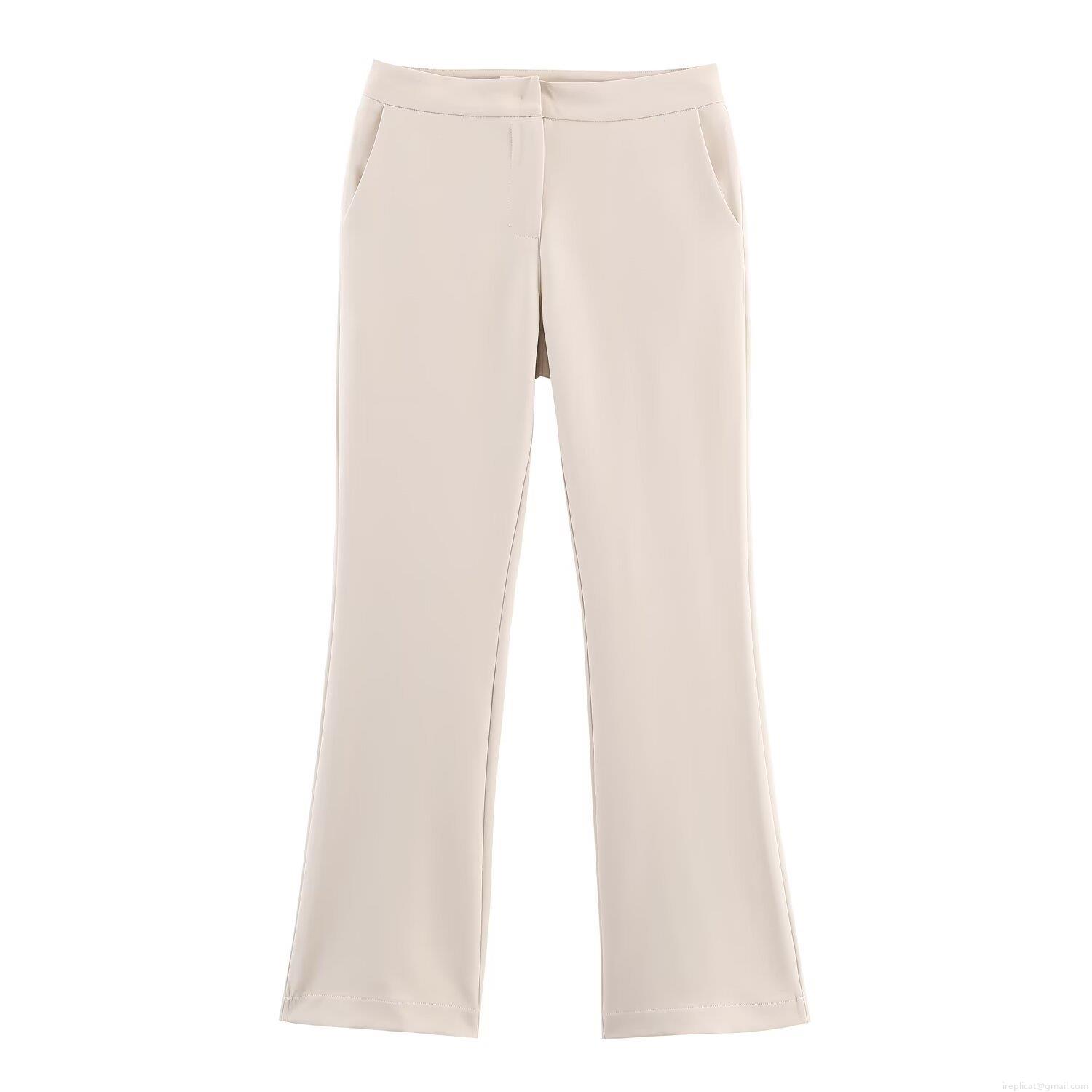 • Women's Professional Blazer Pants Set Solid Polyester Long Sleeve Crew Neck Belted Blazer And High Waist Flare Pants Office Lady Suit Set