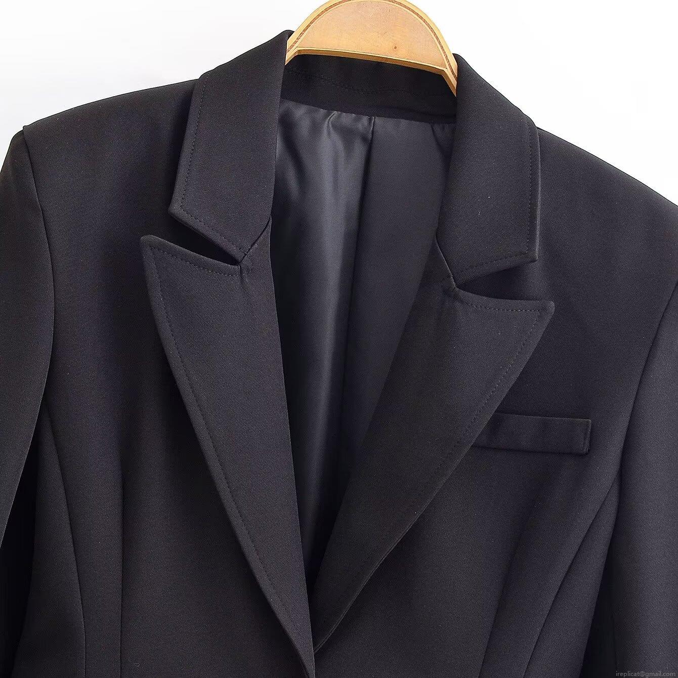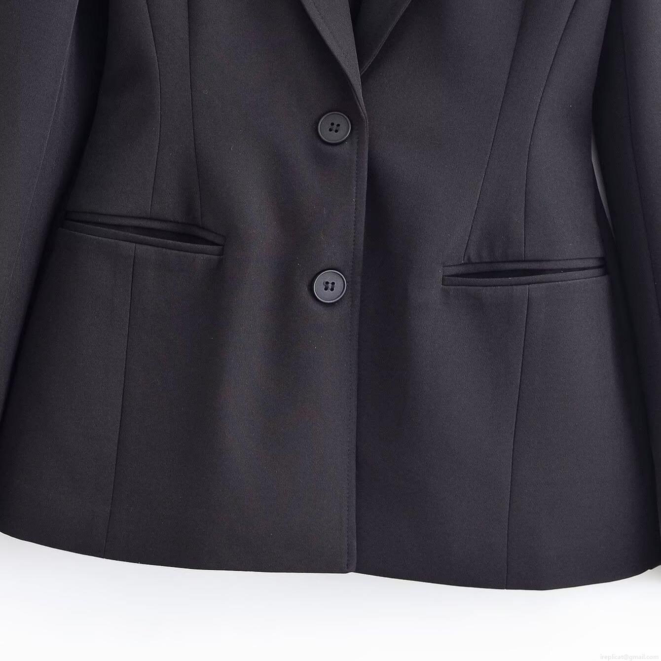 • Women's Professional Slim Fit Black Blazer and High Waist Wide Leg Trousers Business Office Two-Piece Suit Set Elegant Solid Polyester Formal Wear For Ladies