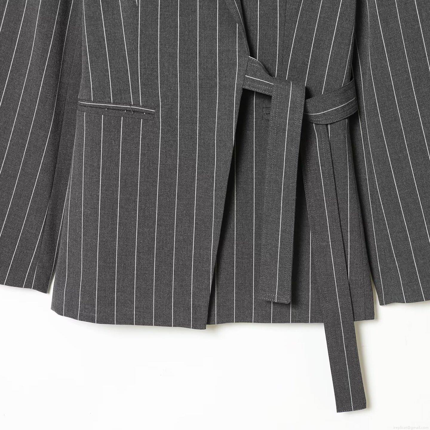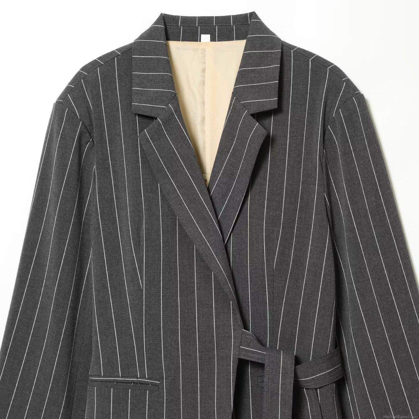 Vertical Stripes, Lapel, Wide-leg Design, Belt Tie