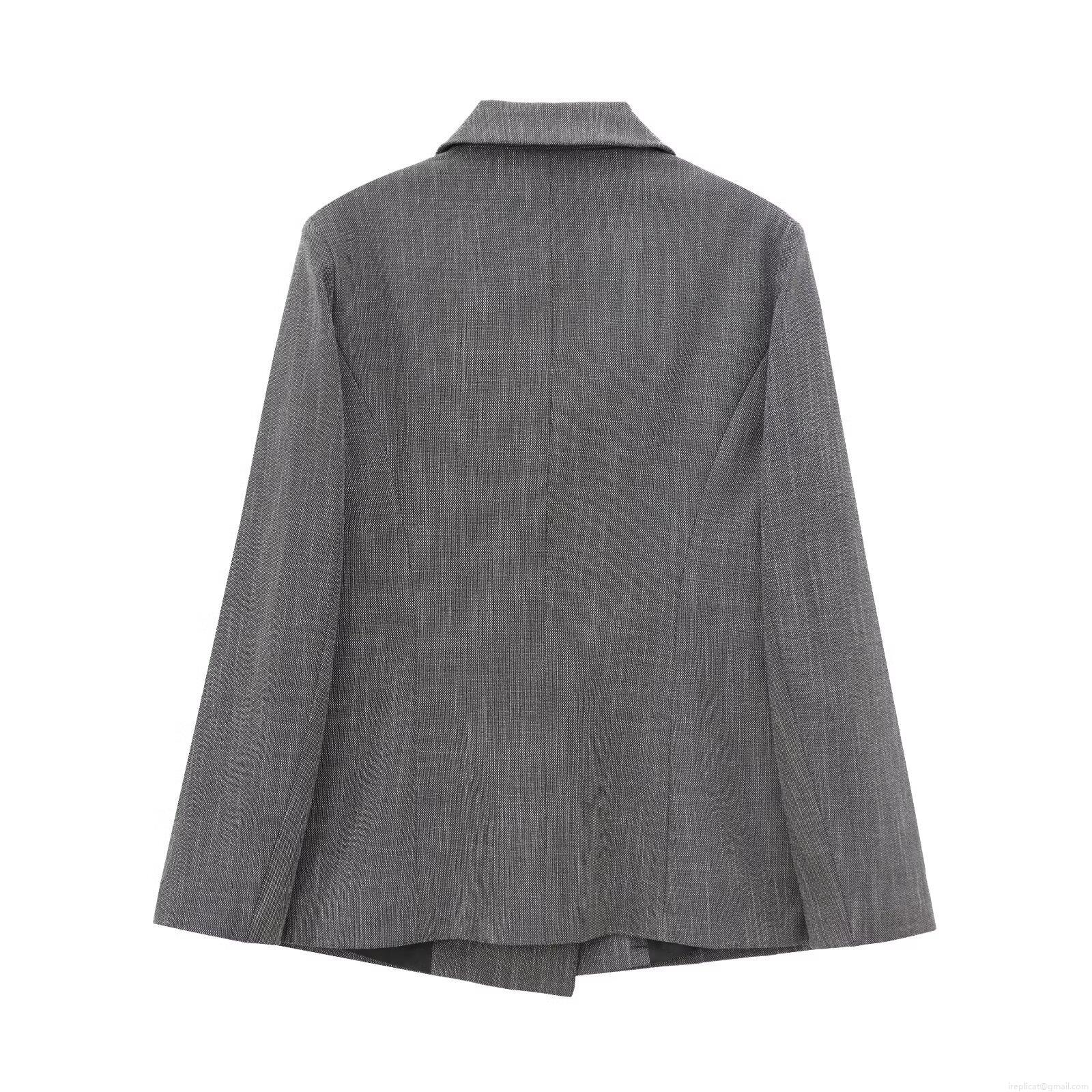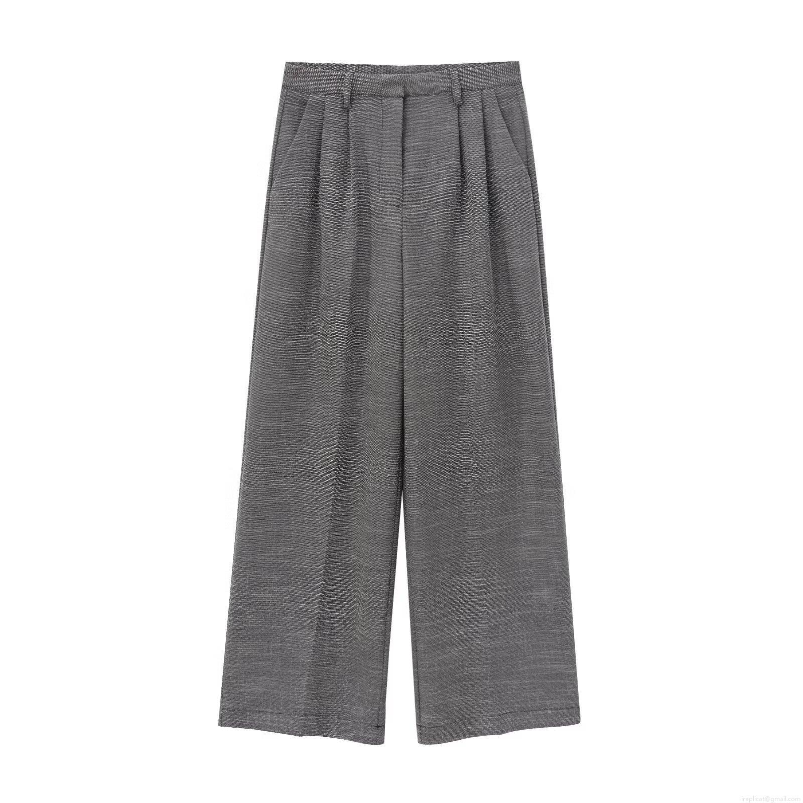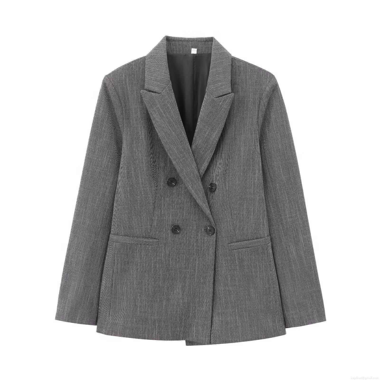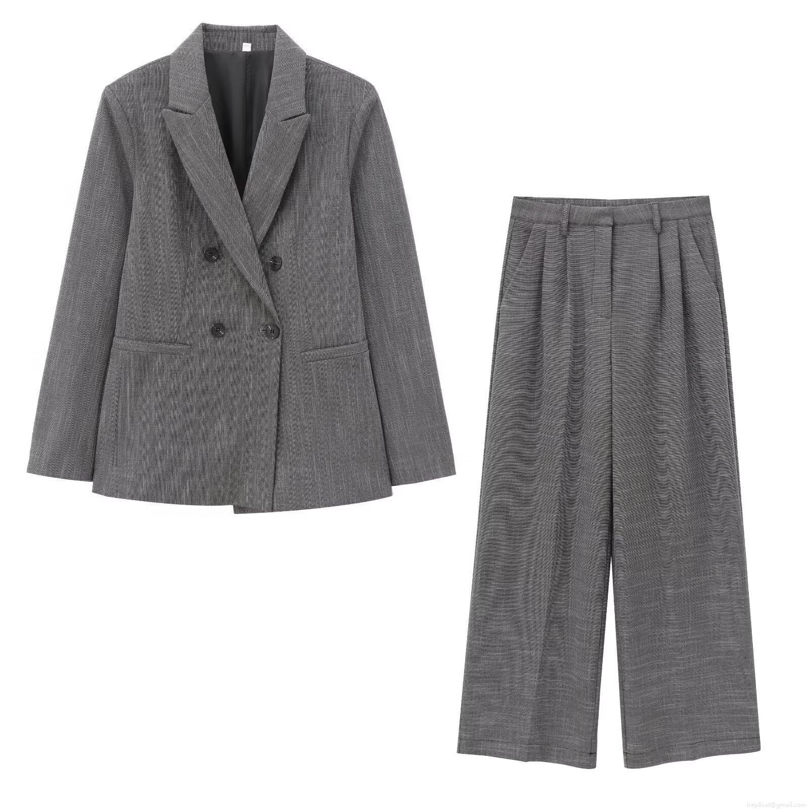 • Women's Professional Two Piece Suit Set Double Breasted Blazer and High Waisted Wide Leg Pants Shoulder Padded Jacket Pleated Office Trousers Commute Style Grey