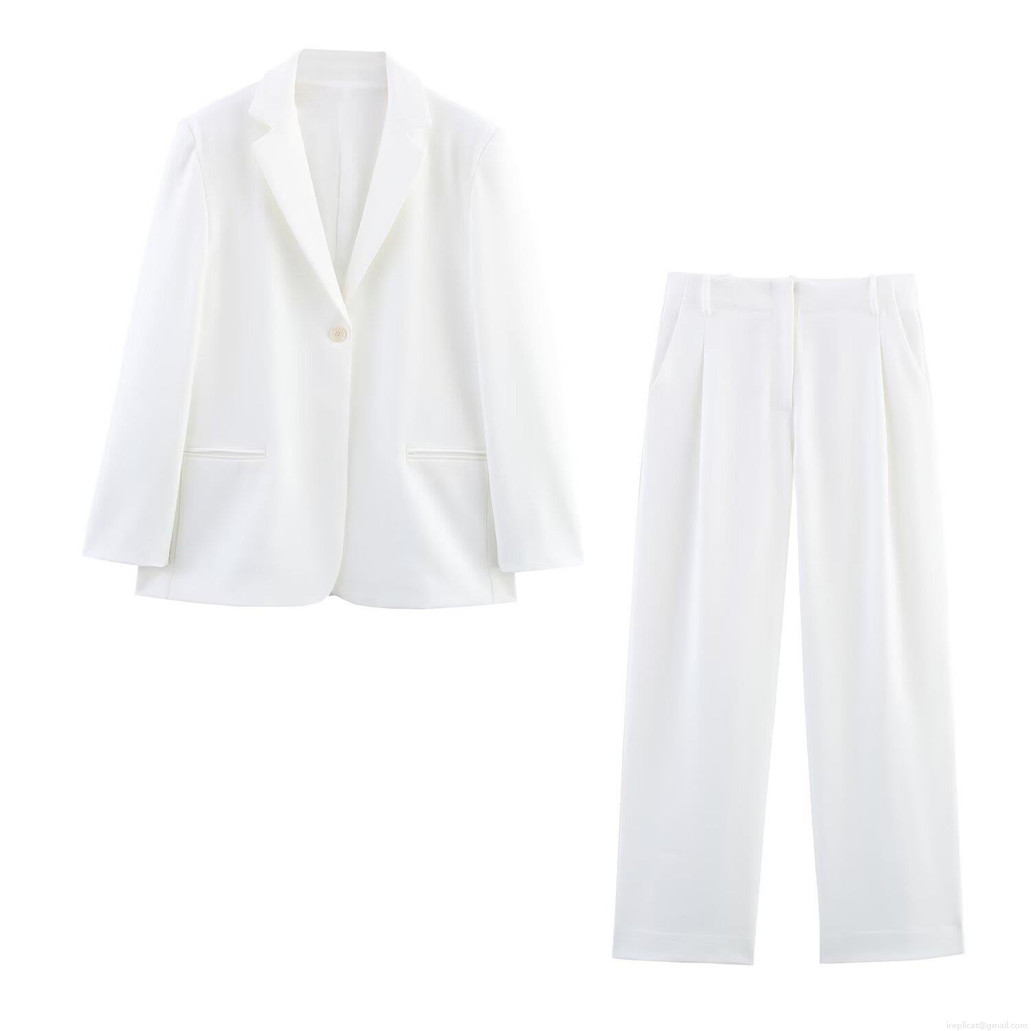 • Women's Professional White Blazer and Pants Set Solid Color Single Button Notched Lapel Long Sleeve Woven Polyester Suit Business Casual Two Piece Outfit for Office Lady