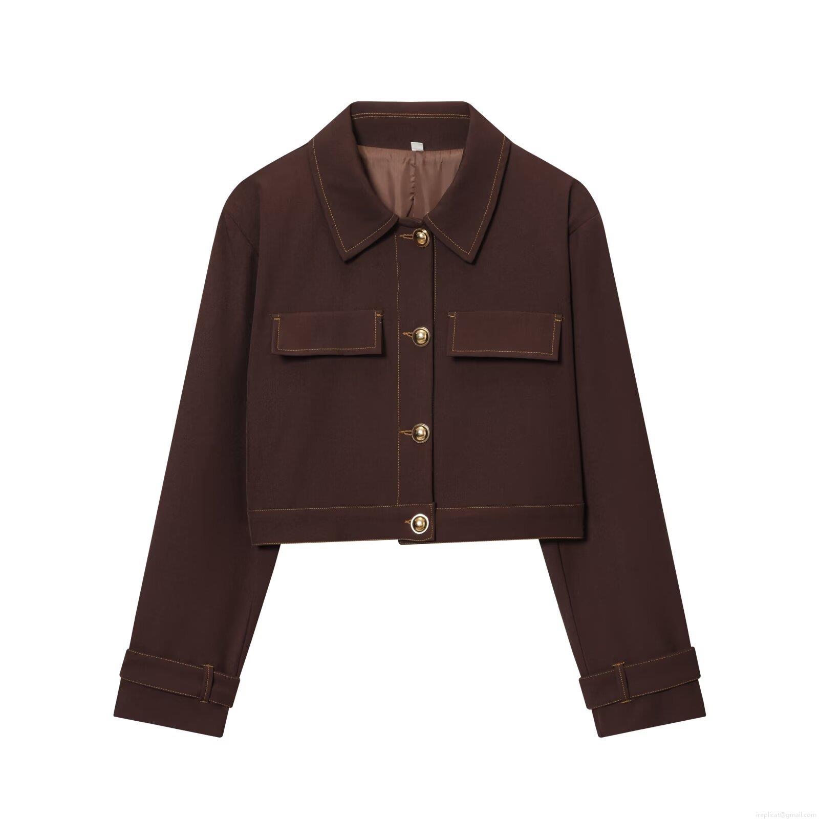 Women's Retro Dark Brown Two Piece Set Short Workwear Jacket And High Waist Flared Pants With Contrast Stitching Elegant Streetwear Autumn Co-ords Coated Twill Fabric With Metal Buttons