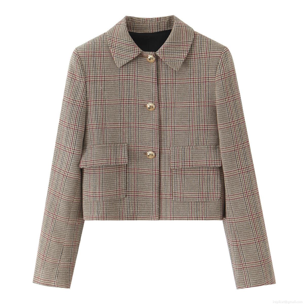 • Women's Retro Plaid Tweed Short Blazer Jacket Or High Waist Wide Leg Pants With Chain Belt Vintage English Style Casual Office Lady Outfits