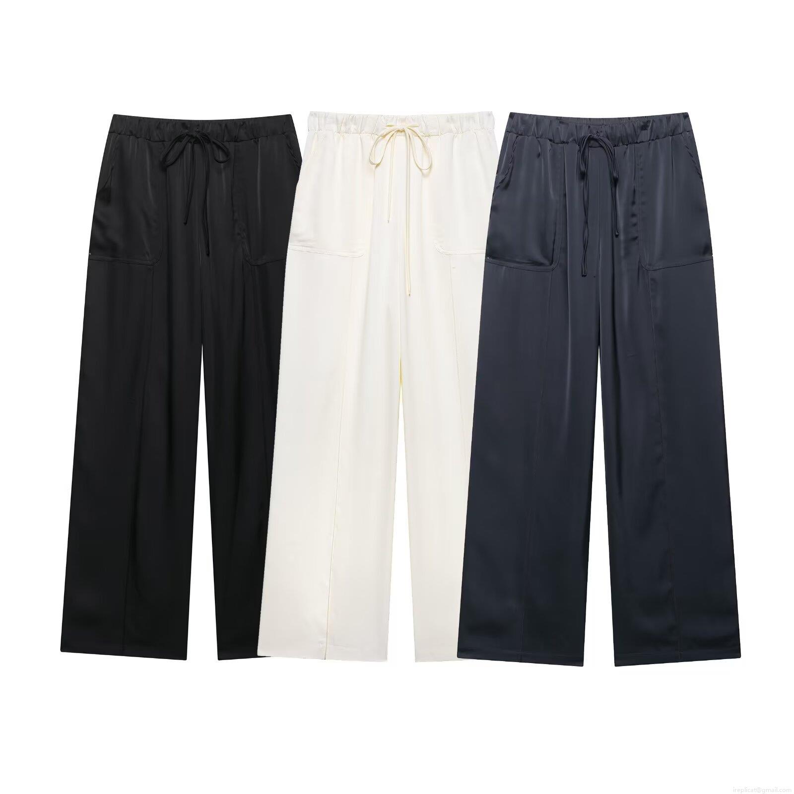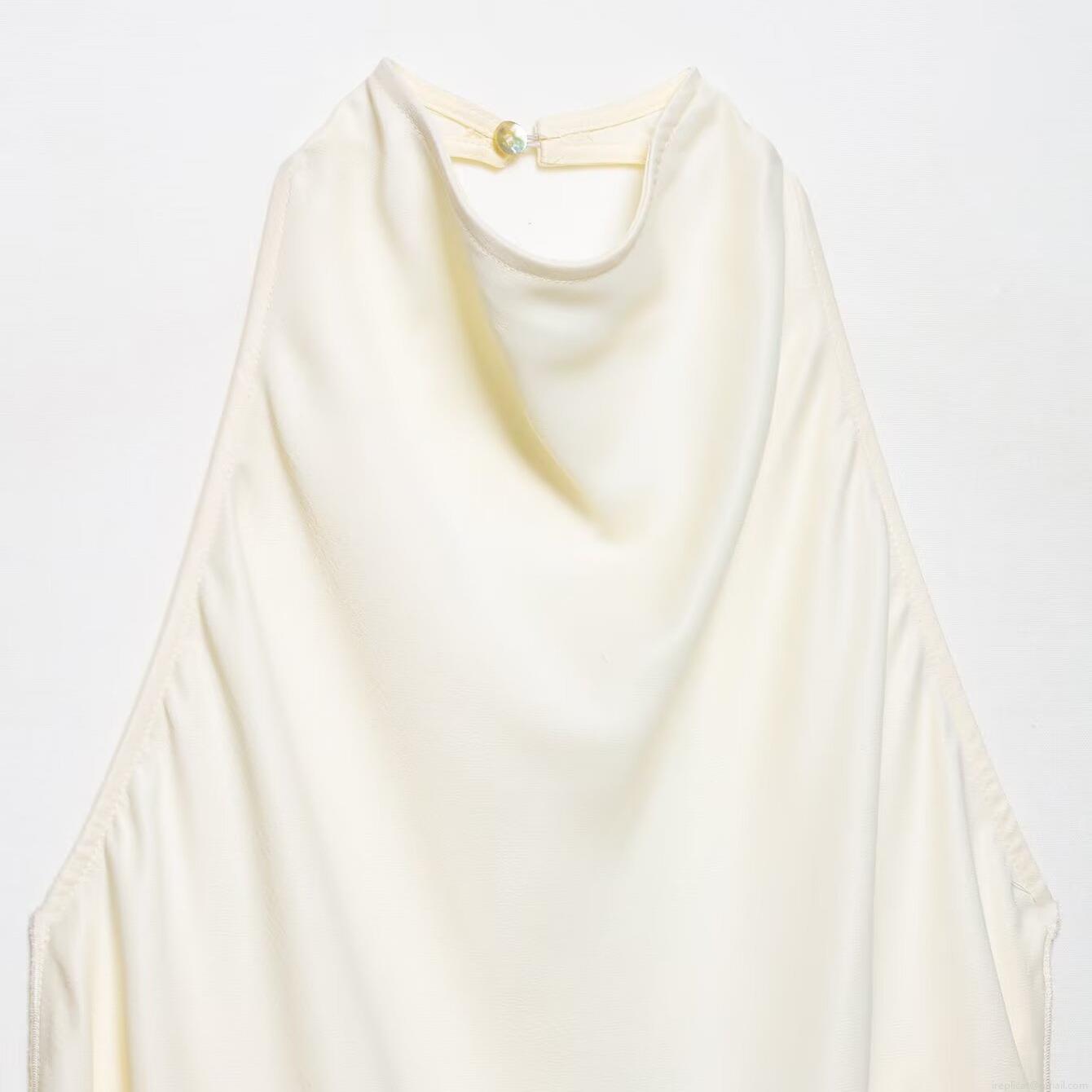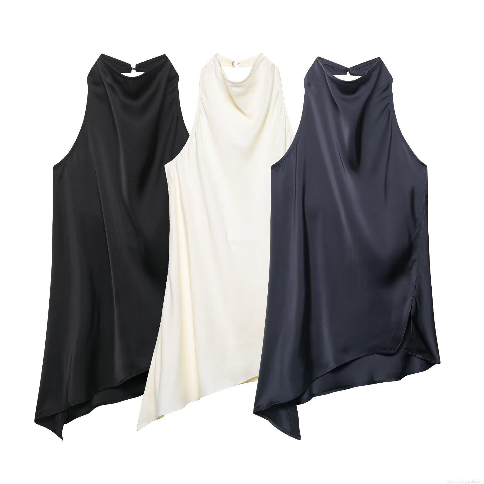 • Women's Satin Halter Neck Top and Wide Leg Pants Set 100% Polyester Silk Texture Irregular Hem Sleeveless Top Drawstring Wide Leg Trousers Summer Casual Party Outfit