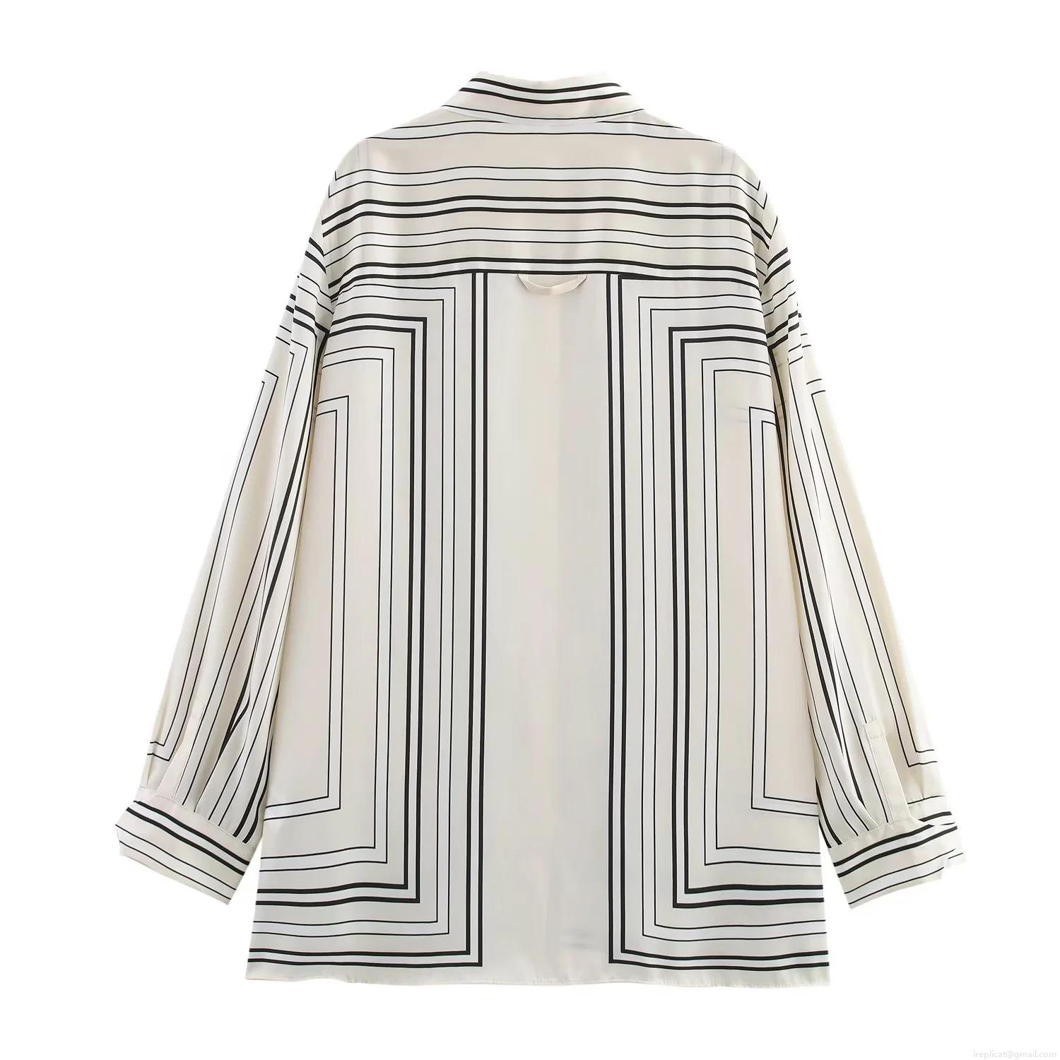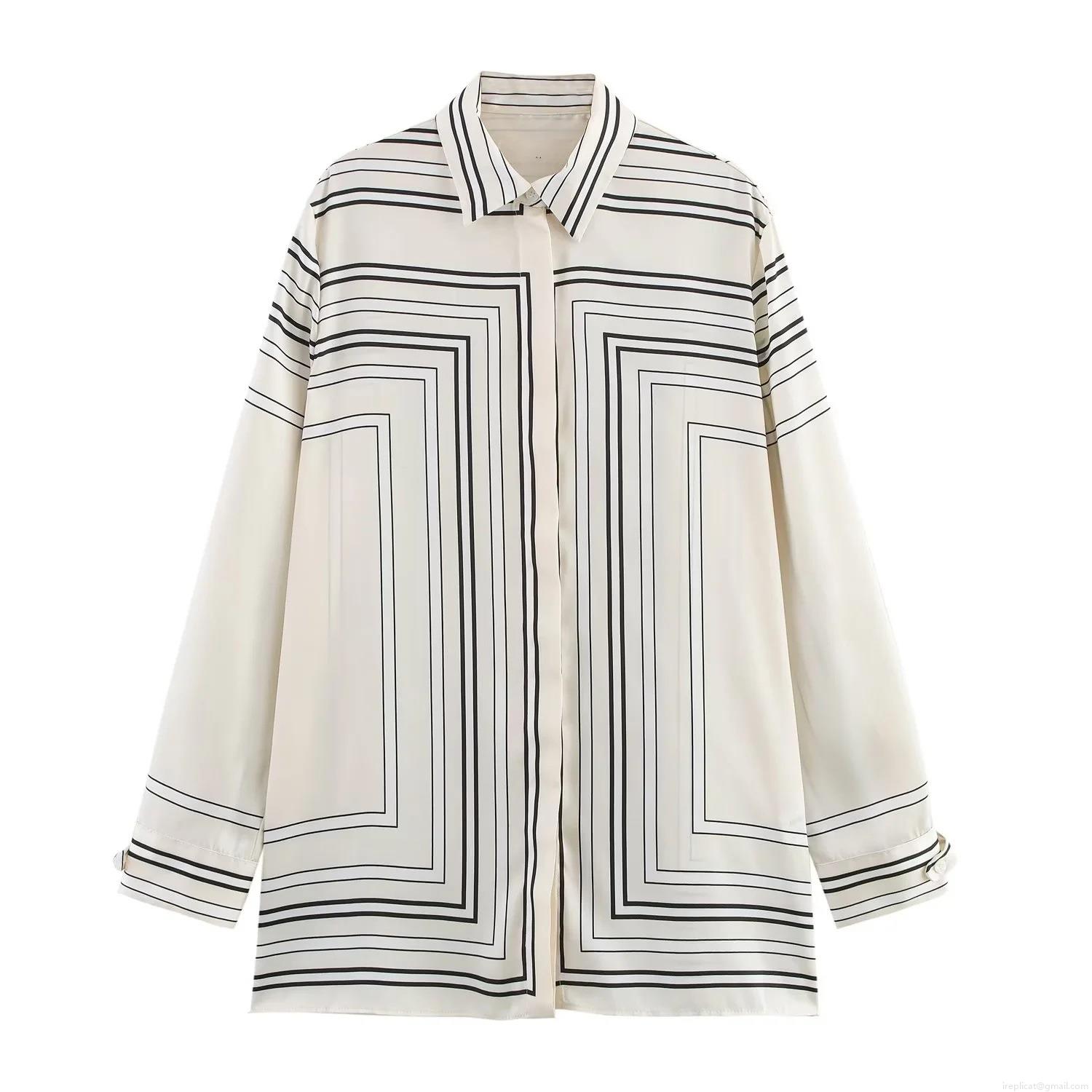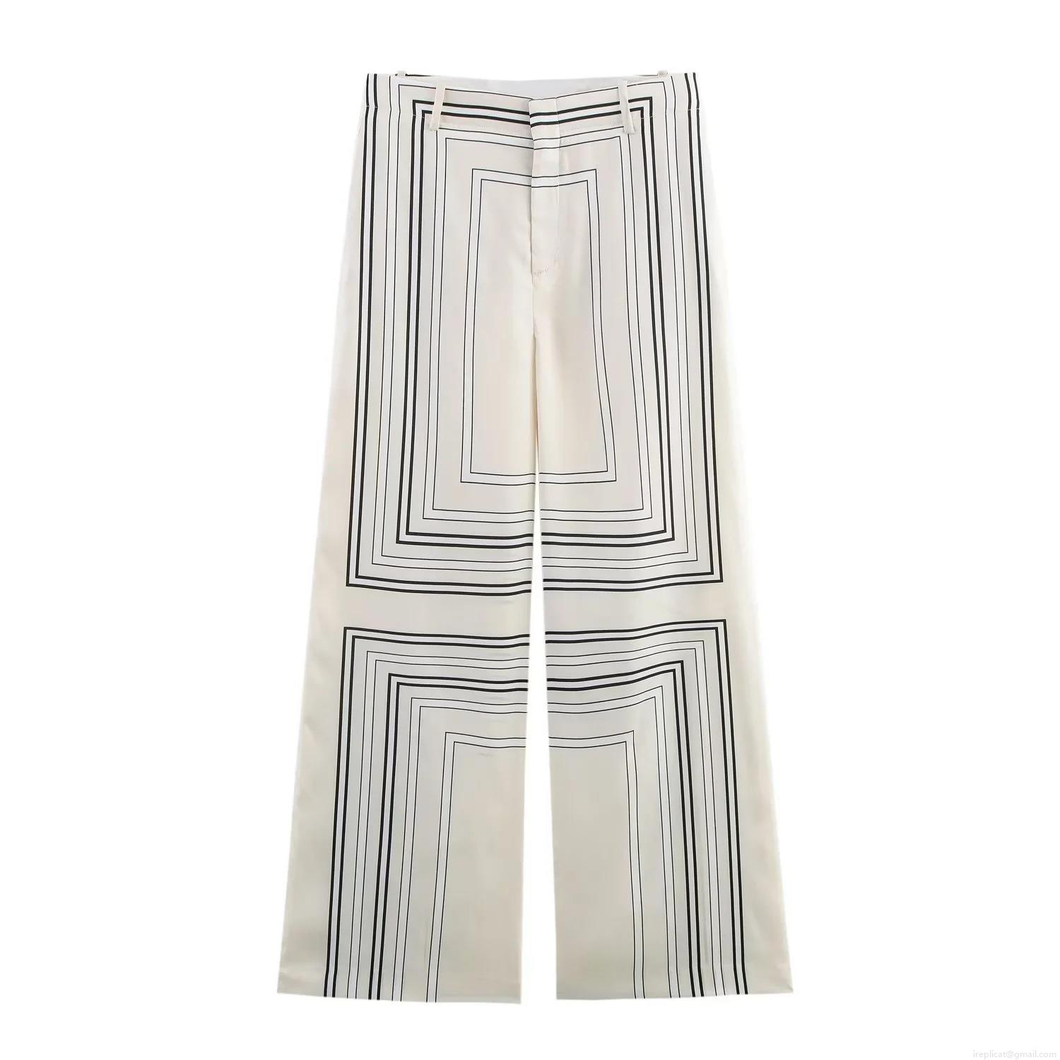 • Women's Satin Printed Two Piece Outfit Set Geometric Long Sleeve Button Down Shirt And High Waist Wide Leg Pants Streetwear Casual Suit