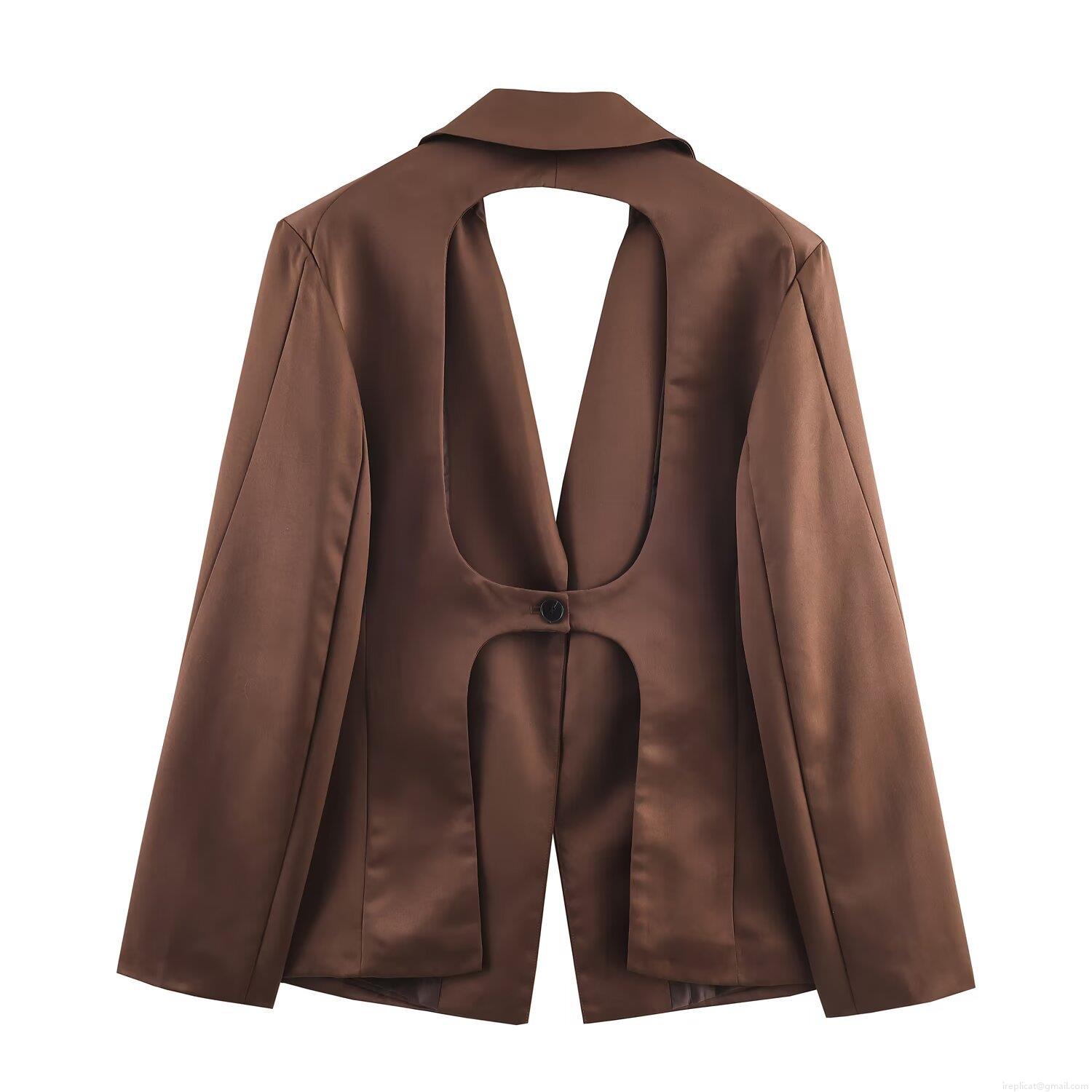 • Women's Satin Three Piece Set Backless Blazer Wide Leg Pants And Tube Top Solid Color Streetwear Party Elegant Brown Suit
