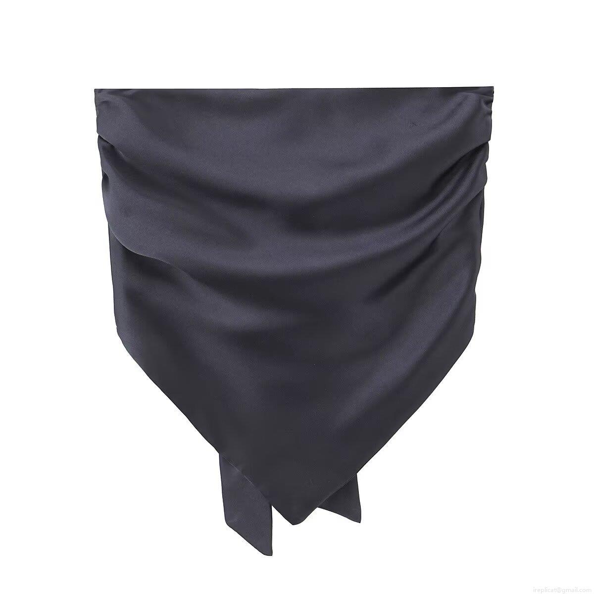 • Women's Satin Two Piece Set Scarf Halter Crop Top And High Waist Wide Leg Pants Solid Color Polyester Streetwear Casual Summer Vacation Outfit