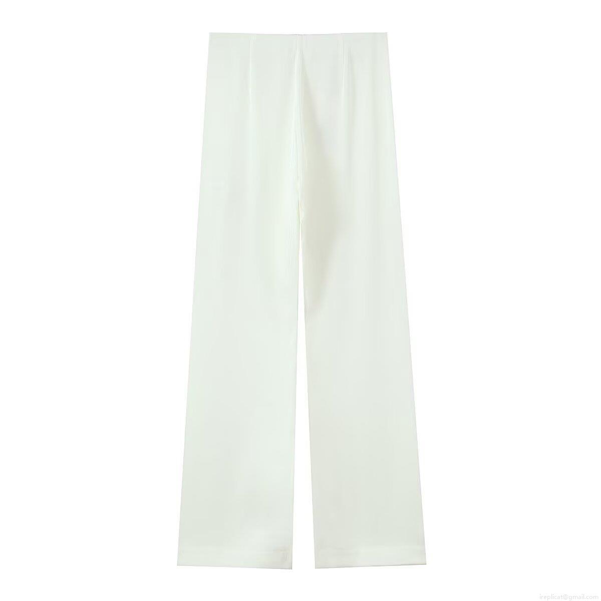 Solid Color, Satin, Lace, Wide-leg, Scarf Collar, High-waisted