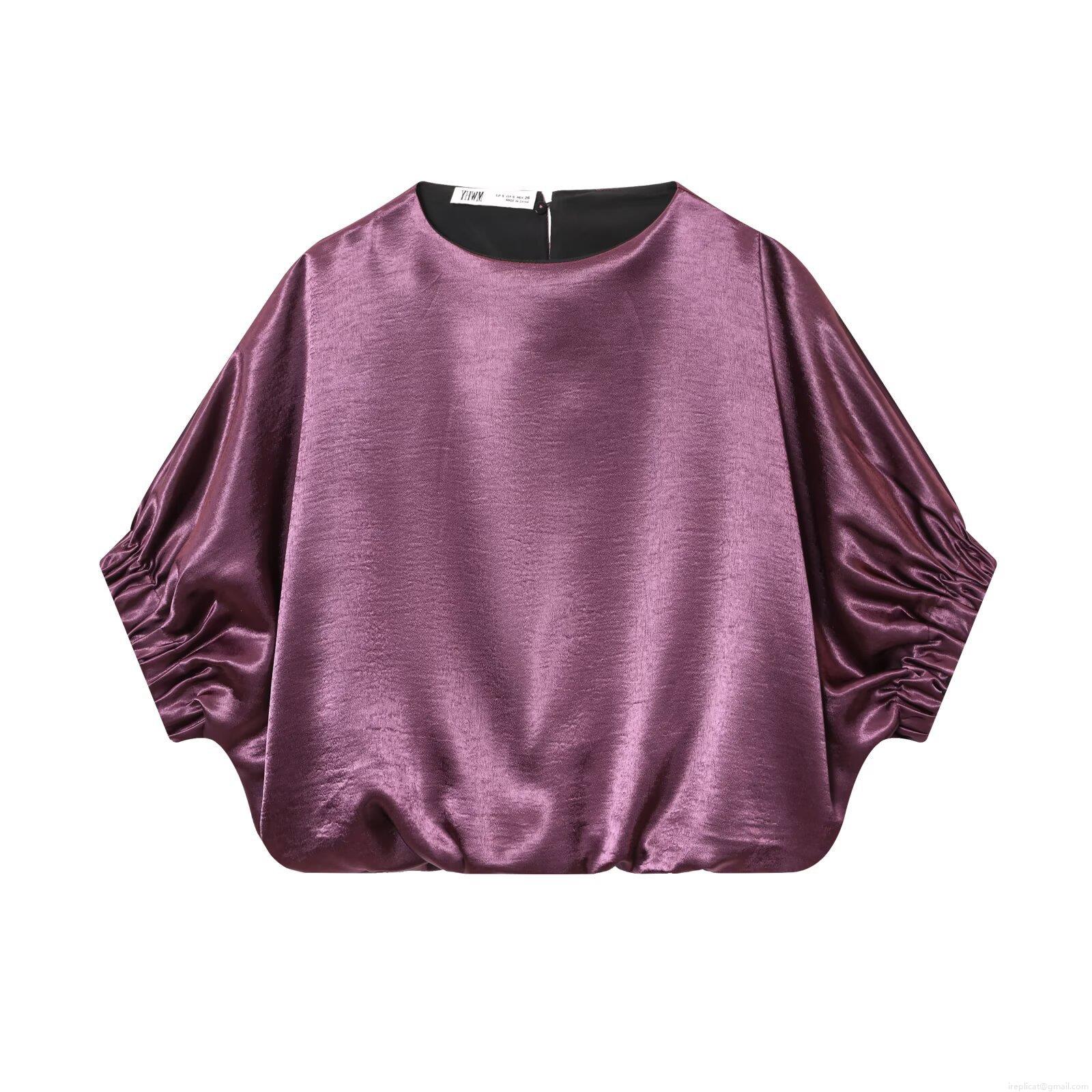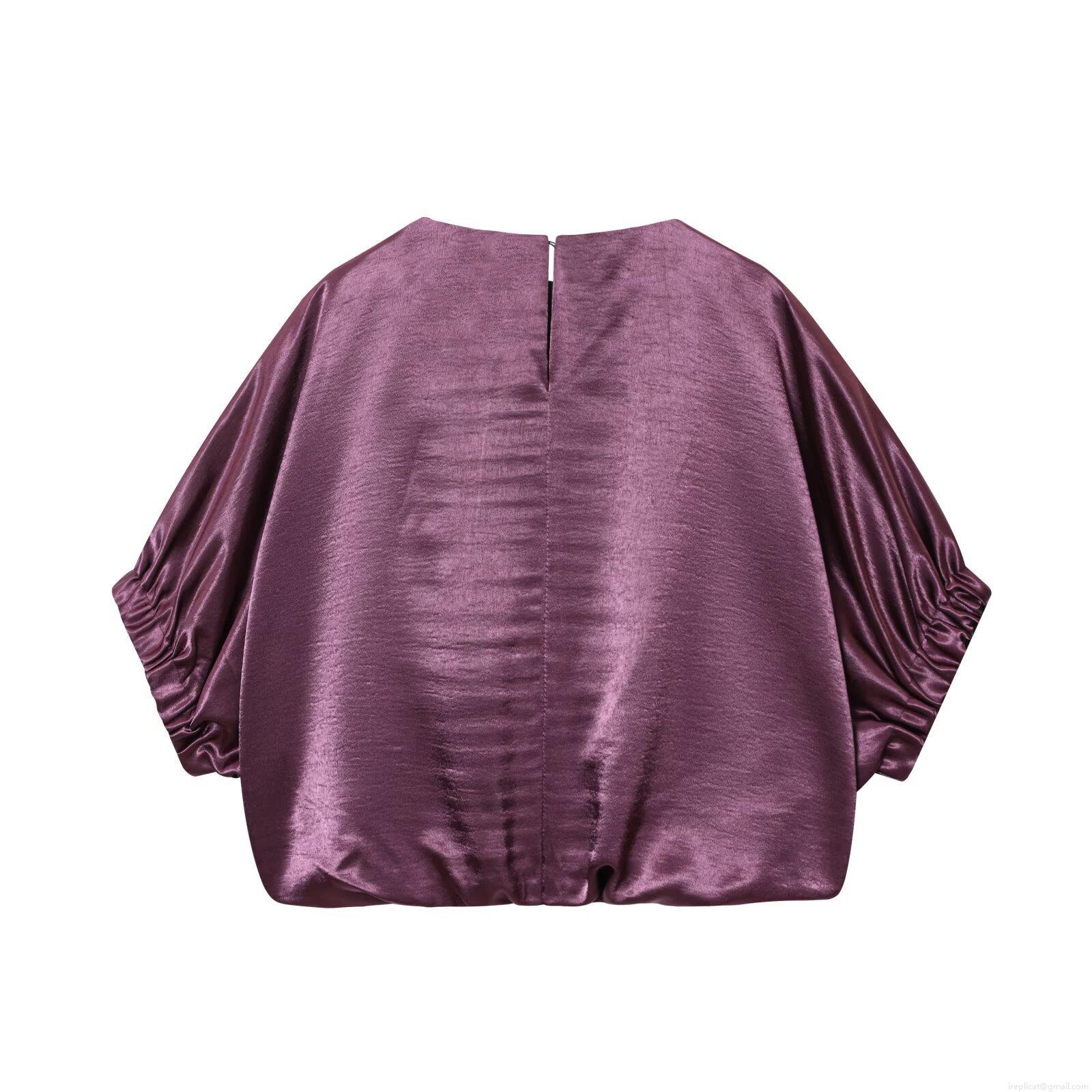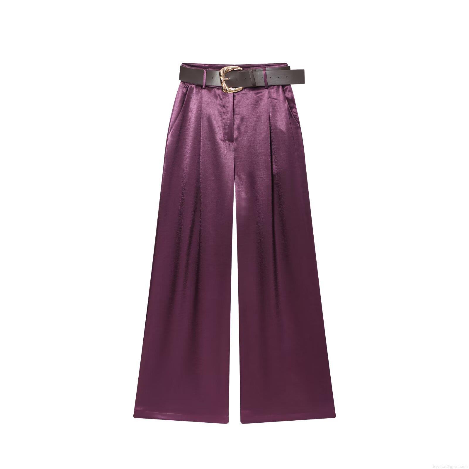 • Women's Satin Two-Piece Set Elegant Batwing Sleeve Round Neck Top And High Waist Wide Leg Pants With Leather Belt Chic Solid Color Streetwear Outfit