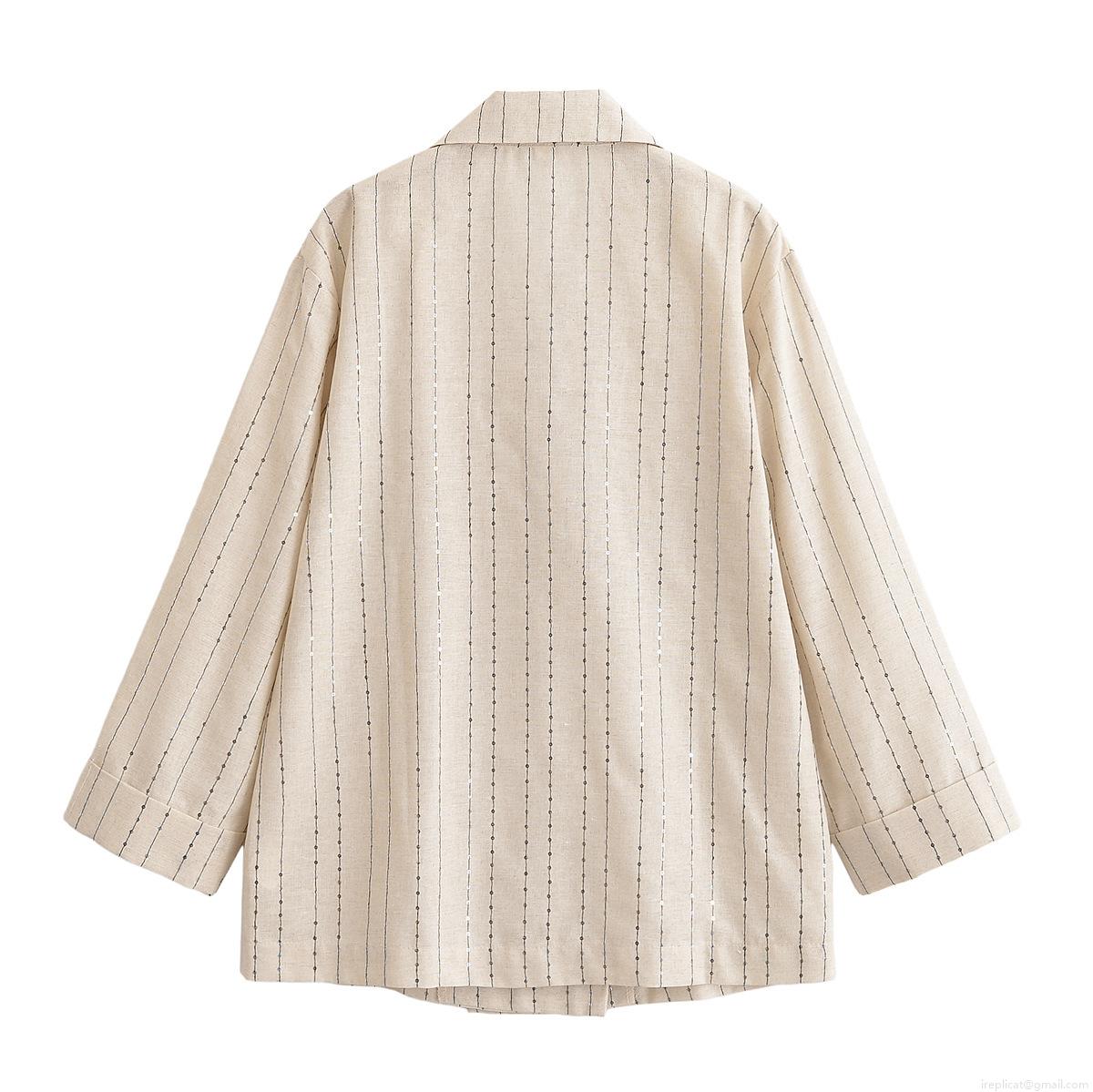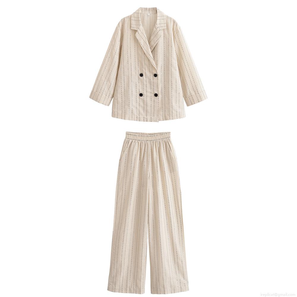 • Women's Sequin Vertical Striped 2 Piece Set Double Breasted Blazer And High Waist Wide Leg Pants Casual Elegant Streetwear Outfit For Women