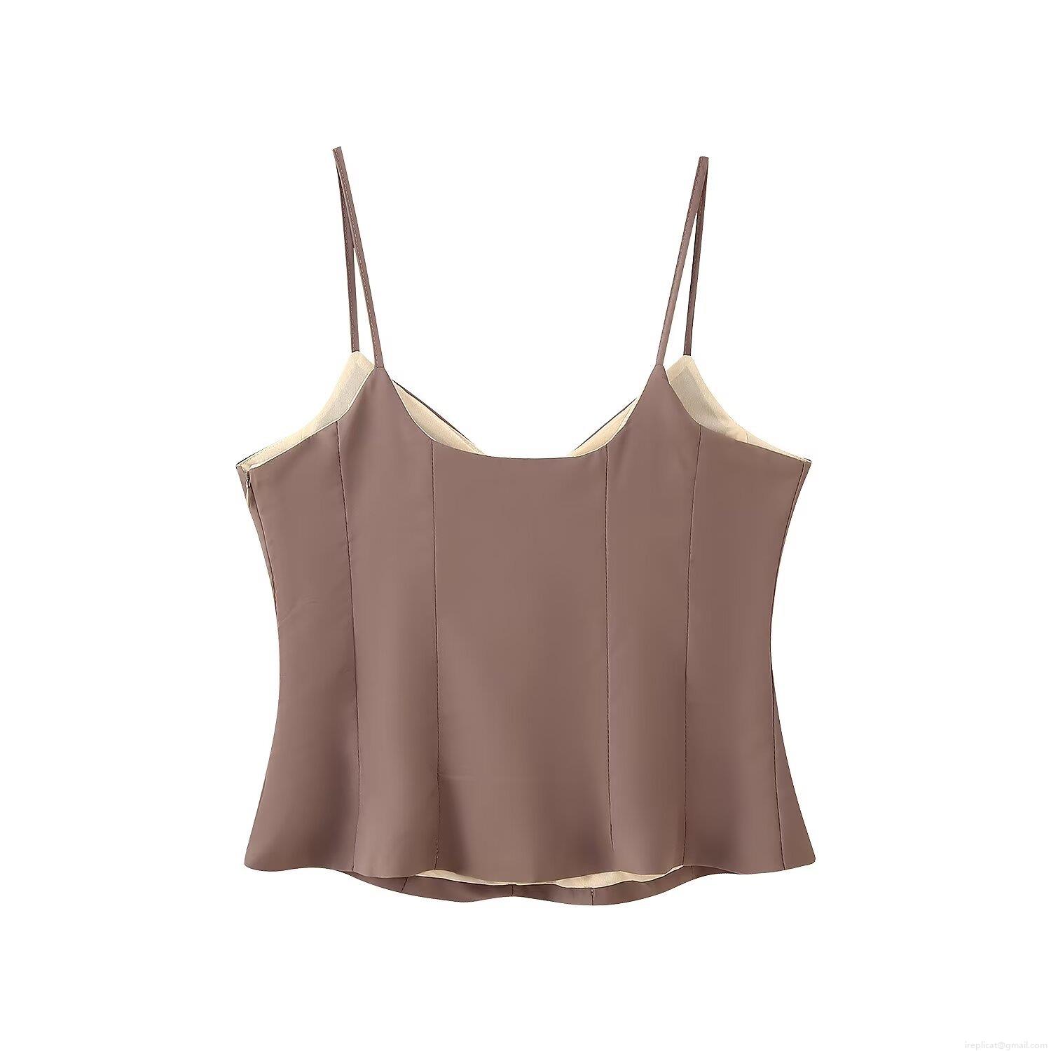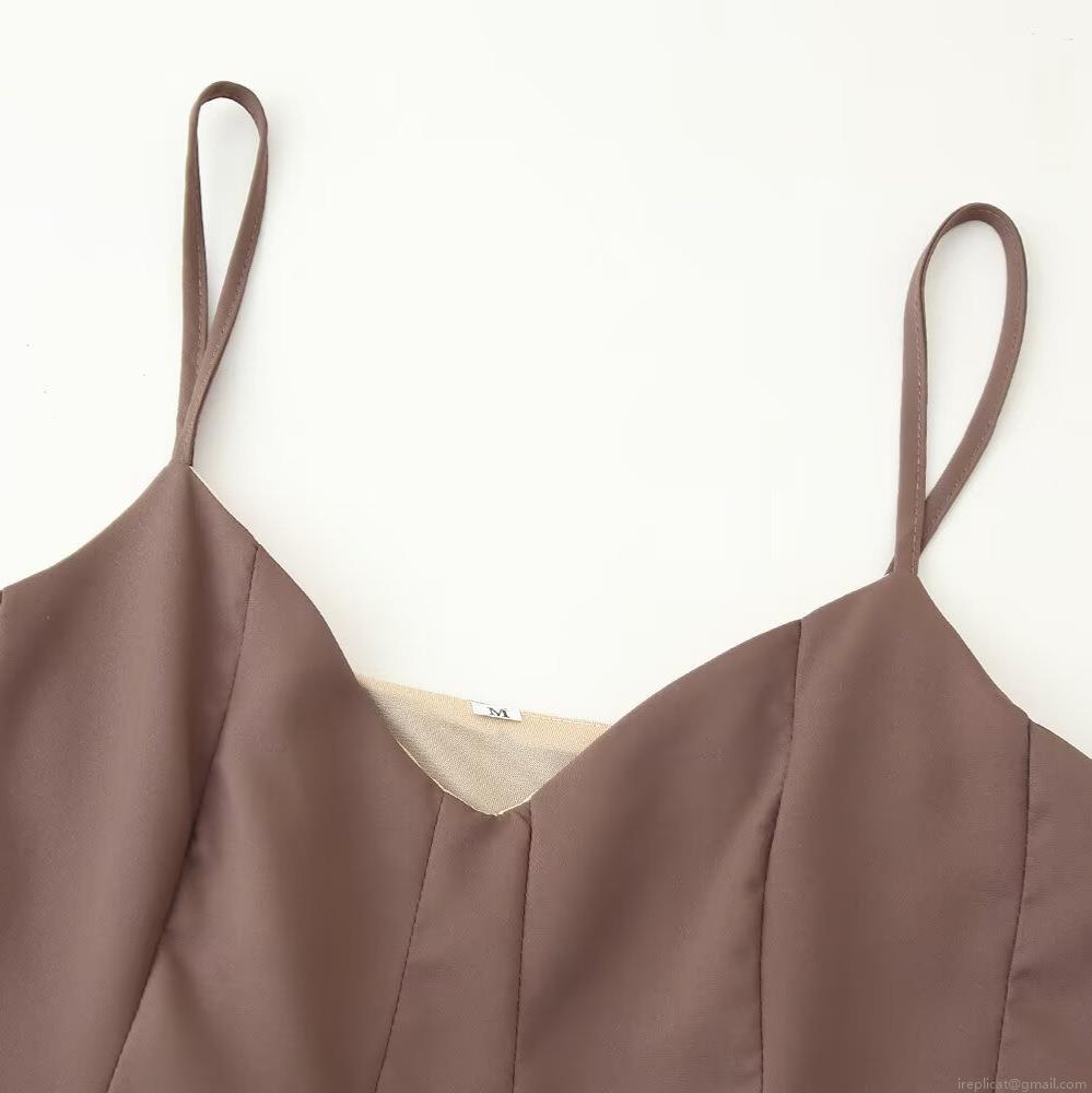 • Women's Sexy Fashion V-Neck Camisole Top And High Waist Straight Pants Two Piece Set Polyester Spandex Solid Color Brown Casual Suit For Summer Dating Party