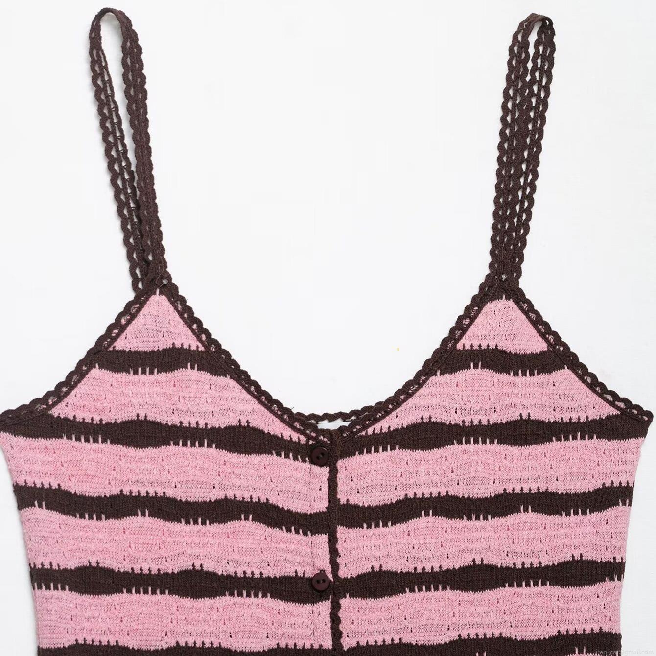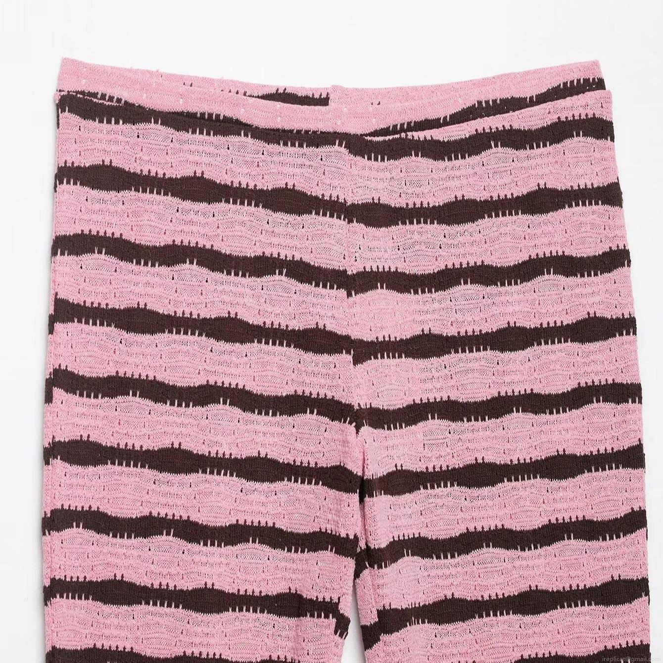 • Women's Sexy Knit Striped 2-Piece Set Lace Cami Top and High Waist Flare Pants Bohemian Summer Knitted Outfit Retro Beachwear Set For Women