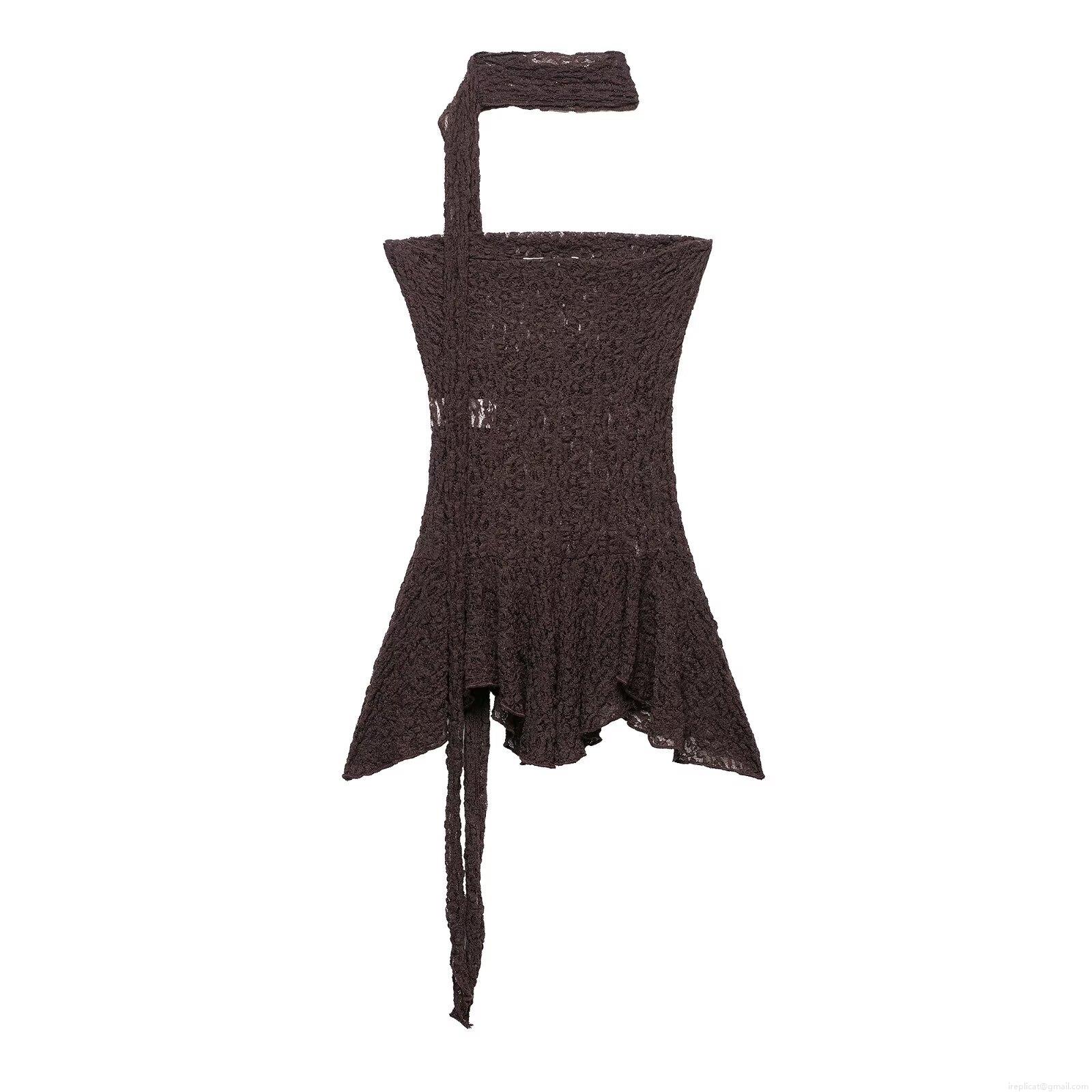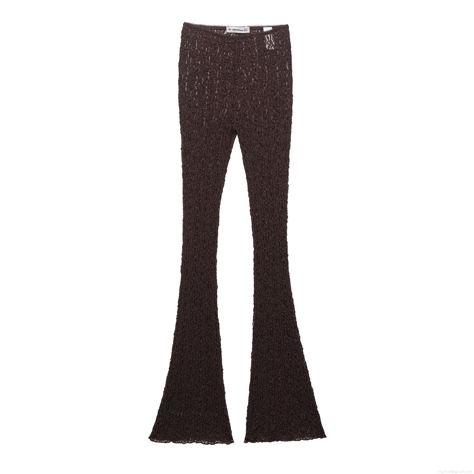 • Women's Sexy Lace Two Piece Outfits Sleeveless Irregular Hem Tube Top And Matching High Waist Flare Pants Set Coffee Brown Streetwear Outfits For Party Clubwear