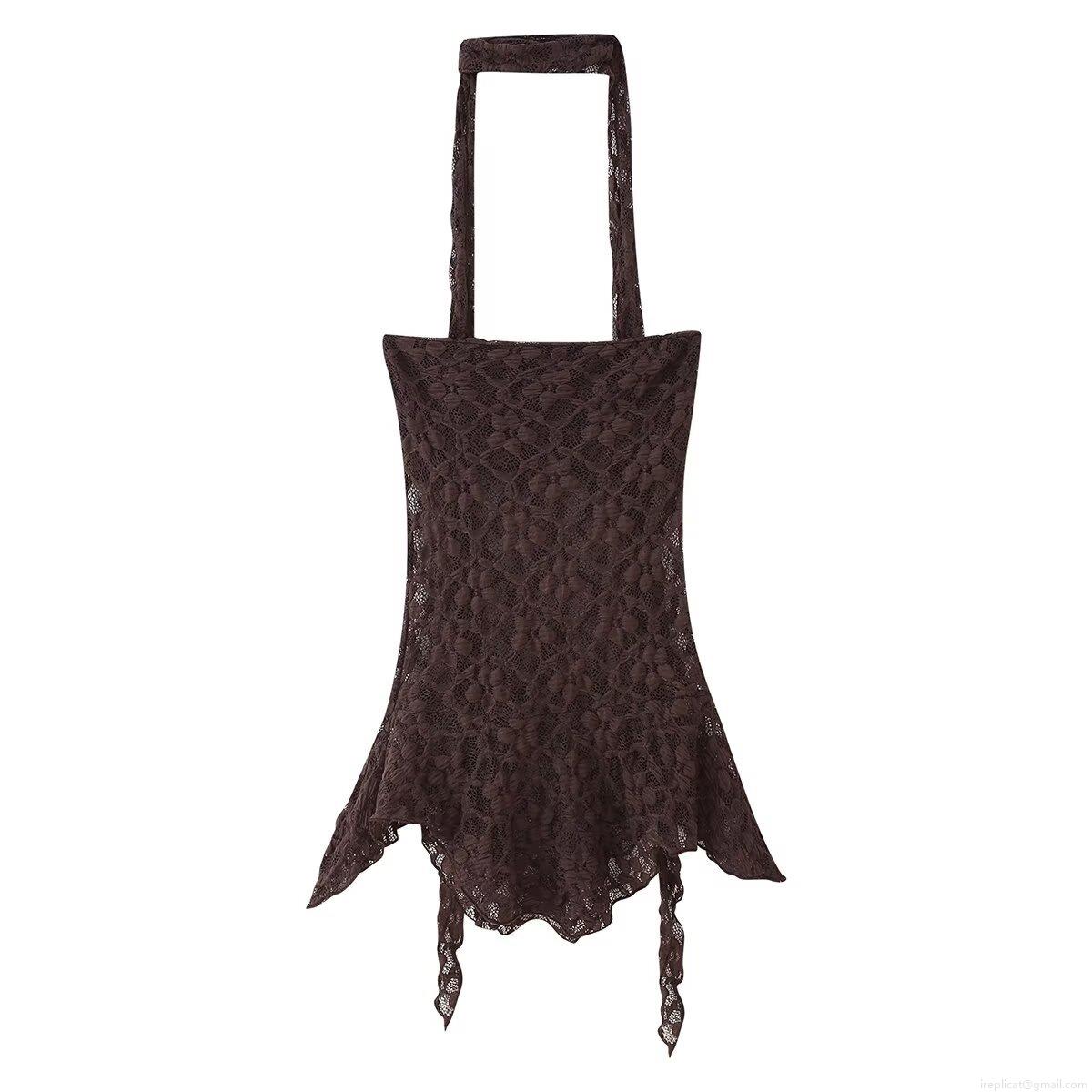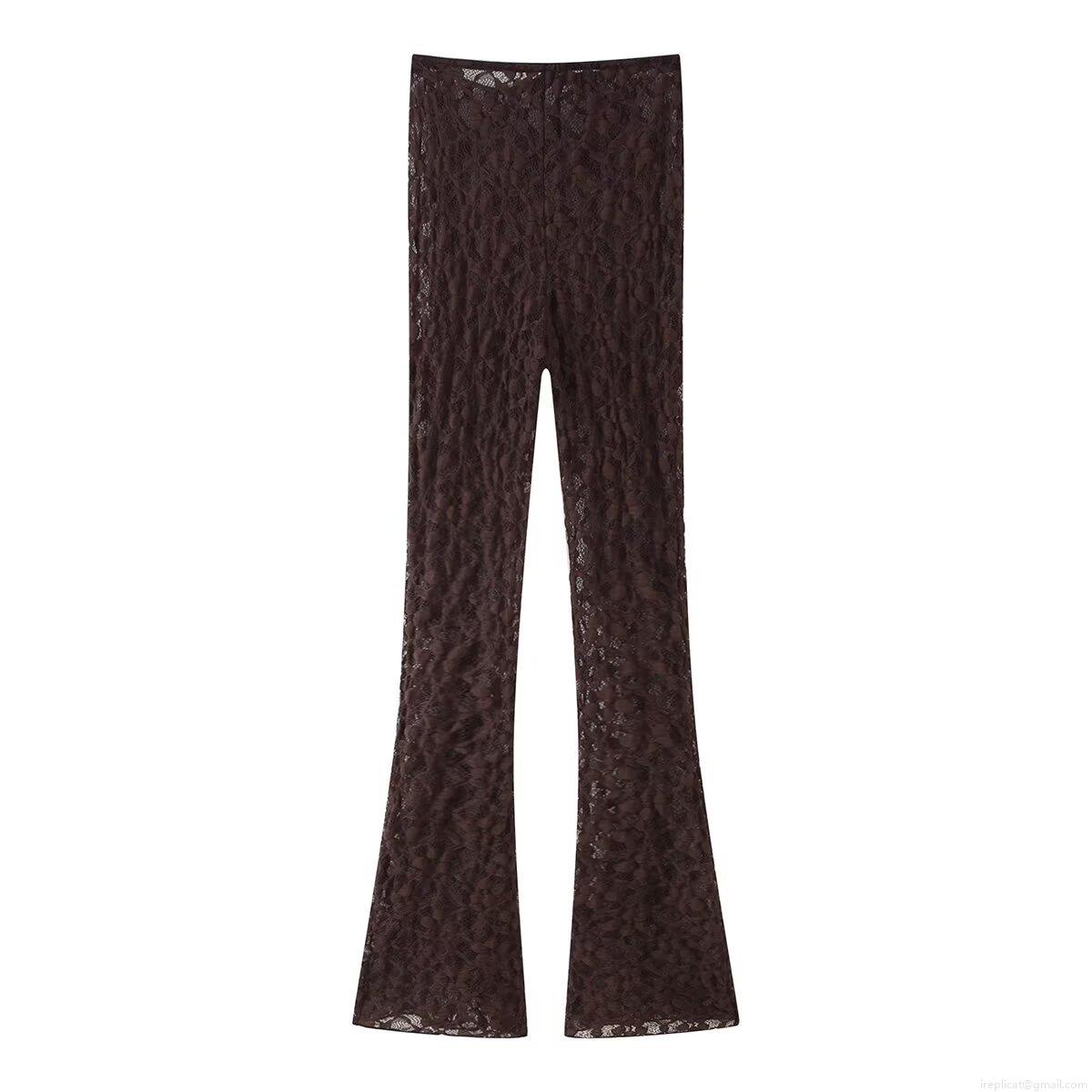 • Women's Sexy Lace Two Piece Pants Set Halter Hollow Out Crop Top And High Waisted Flare Trousers Coffee Brown Solid Color Outfits For Party Club Streetwear