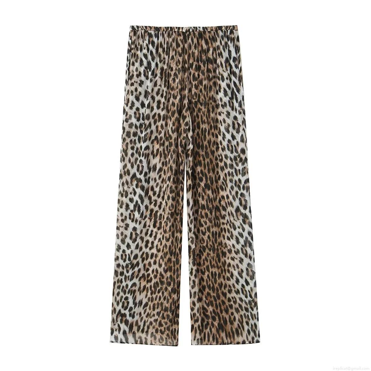 • Women's Sexy Leopard Print Camisole Top and High Waist Wide Leg Pants Set Polyester Summer Casual Streetwear Outfit For Women