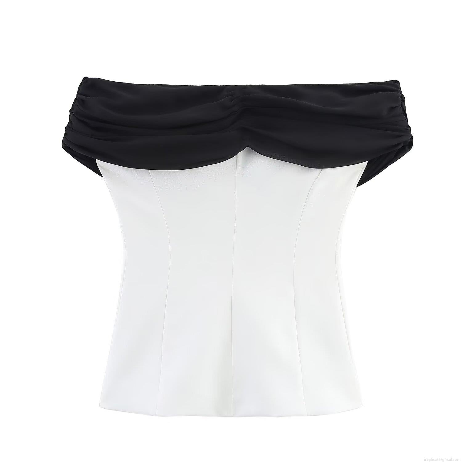 Women's Sexy Spliced Off Shoulder Sleeveless Top And High Waist Straight Leg Trousers Two Piece Set Polyester Contrast Color Elegant Casual Summer Streetwear Outfit