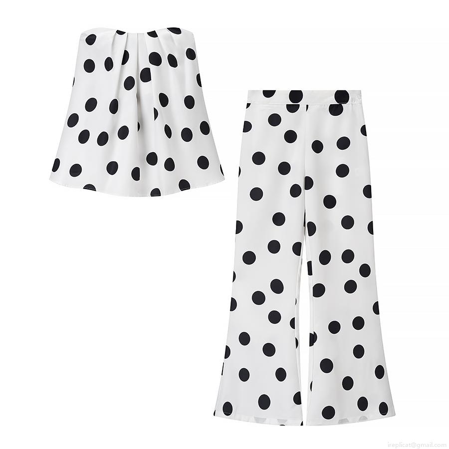 • Women's Sexy Two Piece Polka Dot Print Set Bandeau Crop Top And High Waisted Wide Leg Pants Casual Summer Beach Vacation Streetwear Outfits