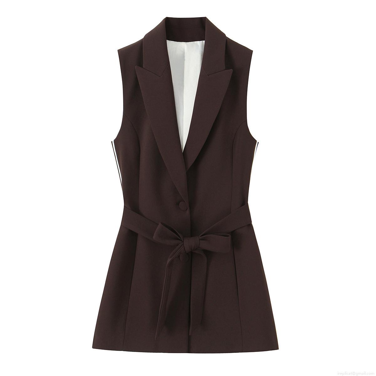 • Women's Sleeveless Blazer Vest And Side Stripe Straight Leg Pants Two Piece Set Elegant Casual Polyester Suit For Autumn Fashion Streetwear
