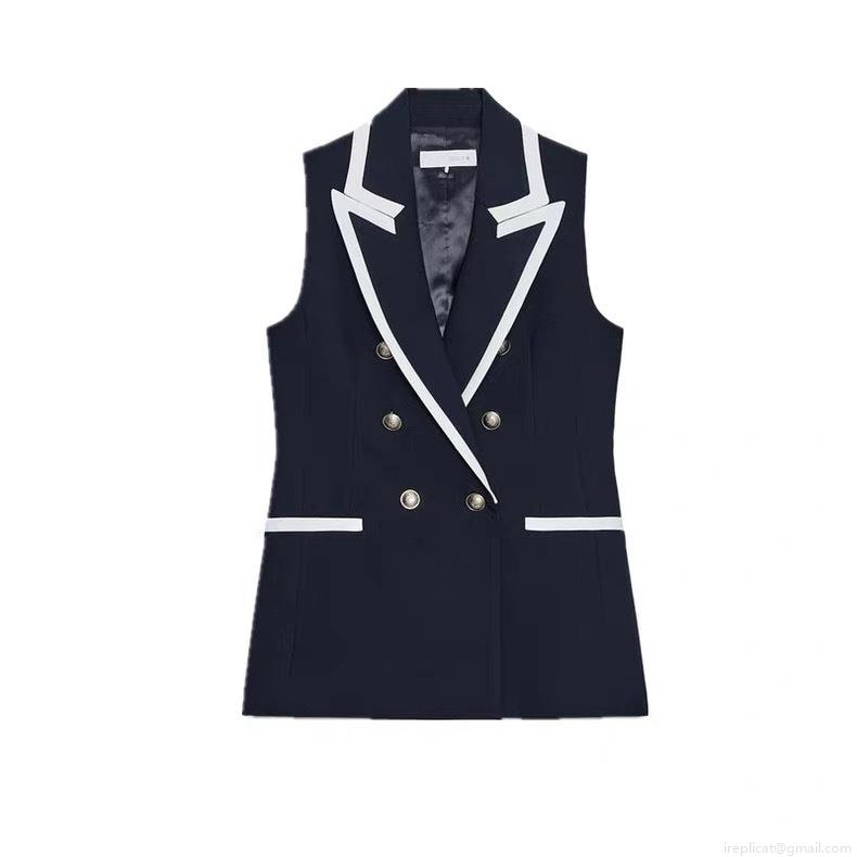• Women's Sleeveless Double Breasted Vest And Straight Leg Pants Two Piece Set Navy Blue Contrast Trim Suit For Office Street Wear