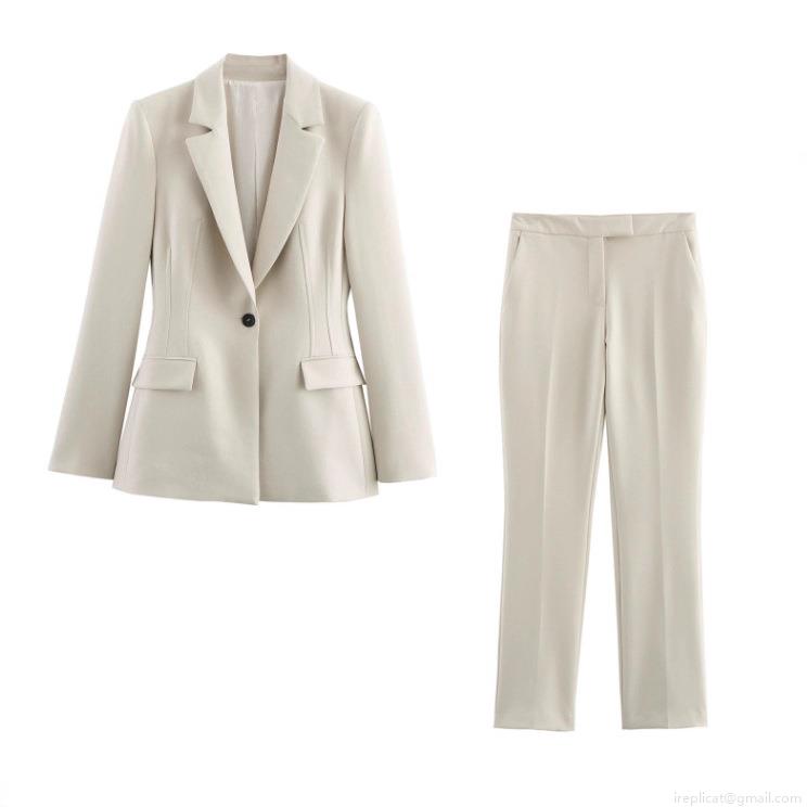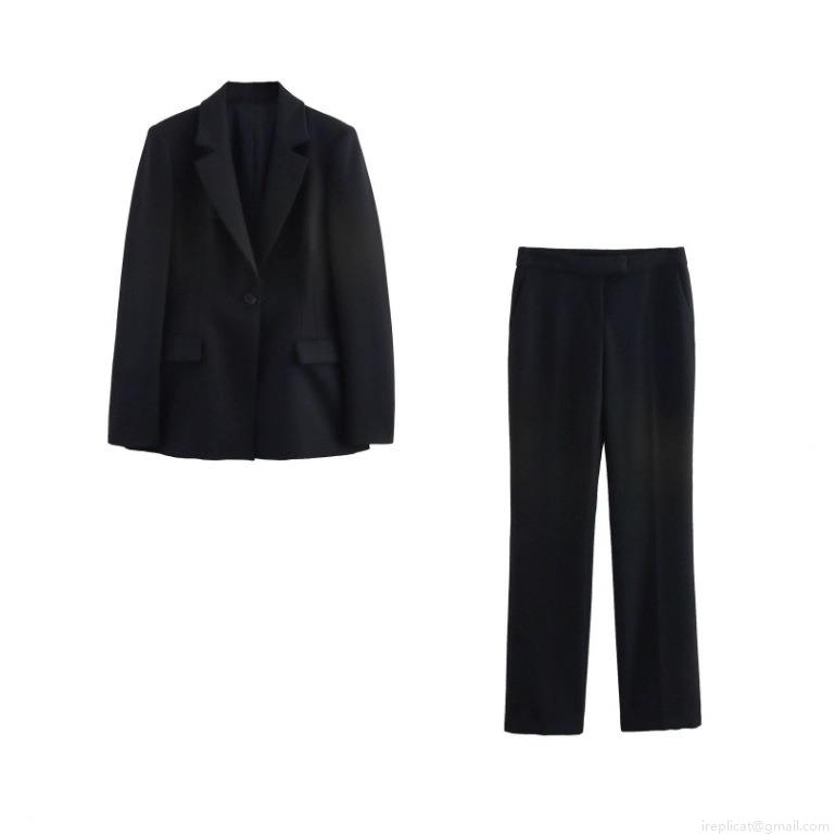 • Women's Slim Fit Polyester Blazer And Flare Pants Suit Set Business Casual Long Sleeve Office Professional Two Piece Outfits For Work Party