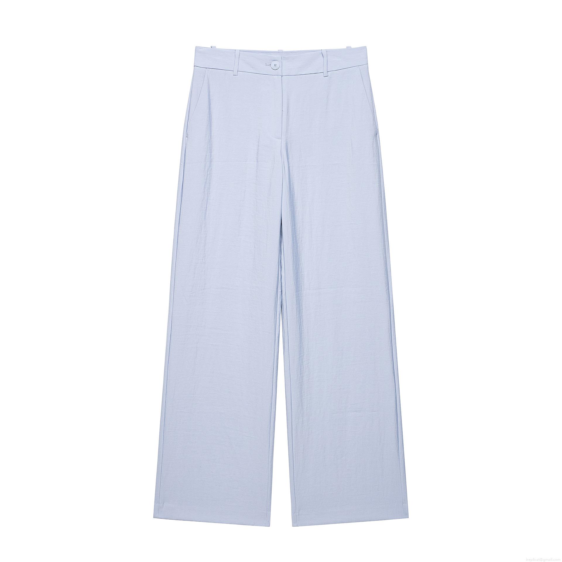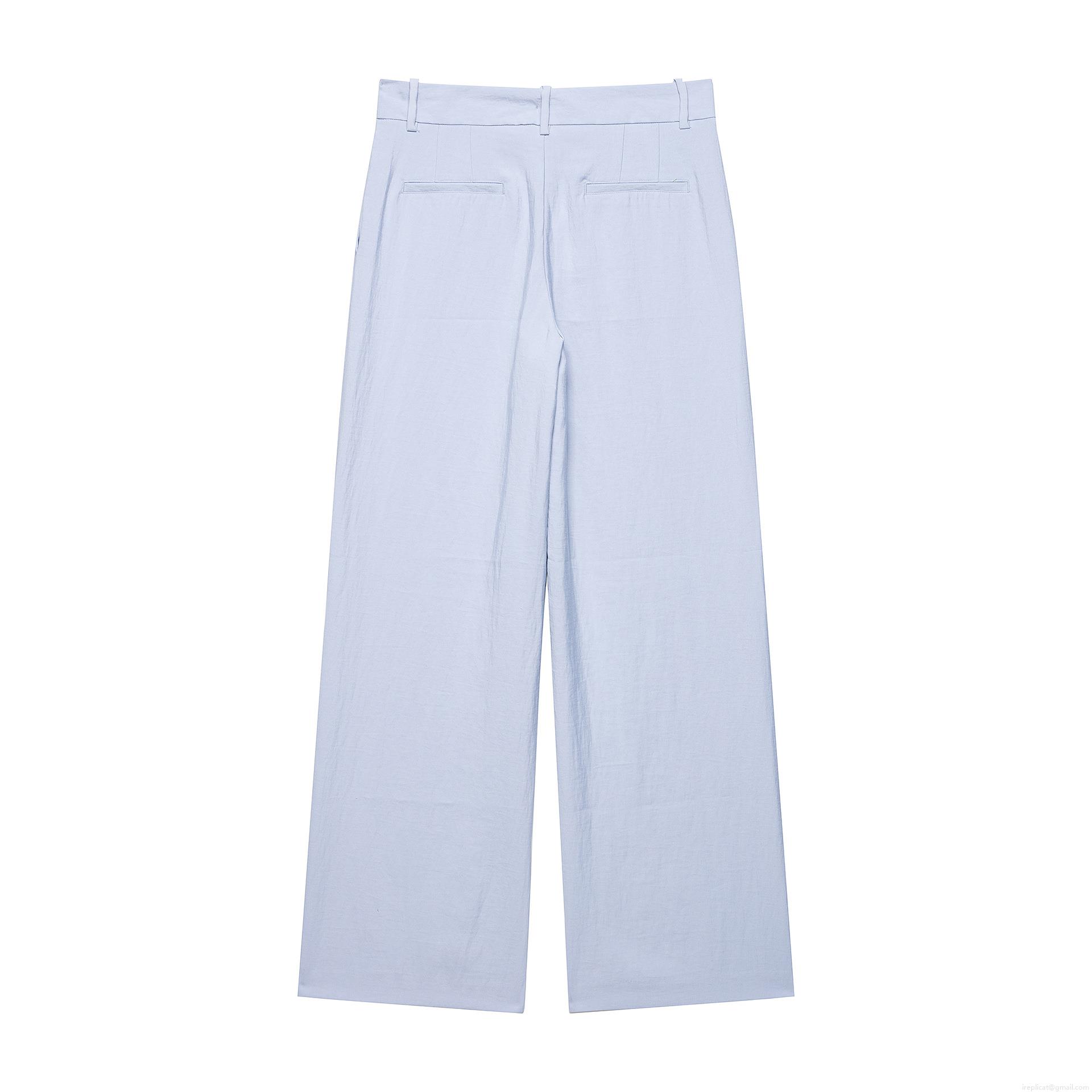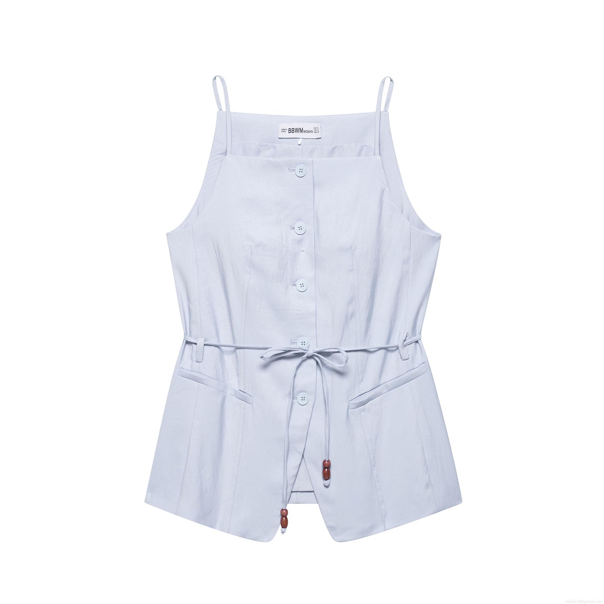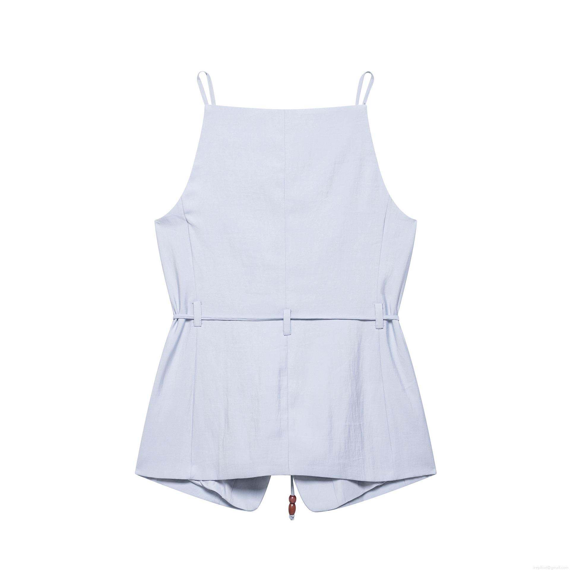 • Women's Solid Light Blue 2-Piece Set Beaded Drawstring Belt Camisole Top And High Waist Wide Leg Straight Pants Casual Western Style Sleeveless Outfit