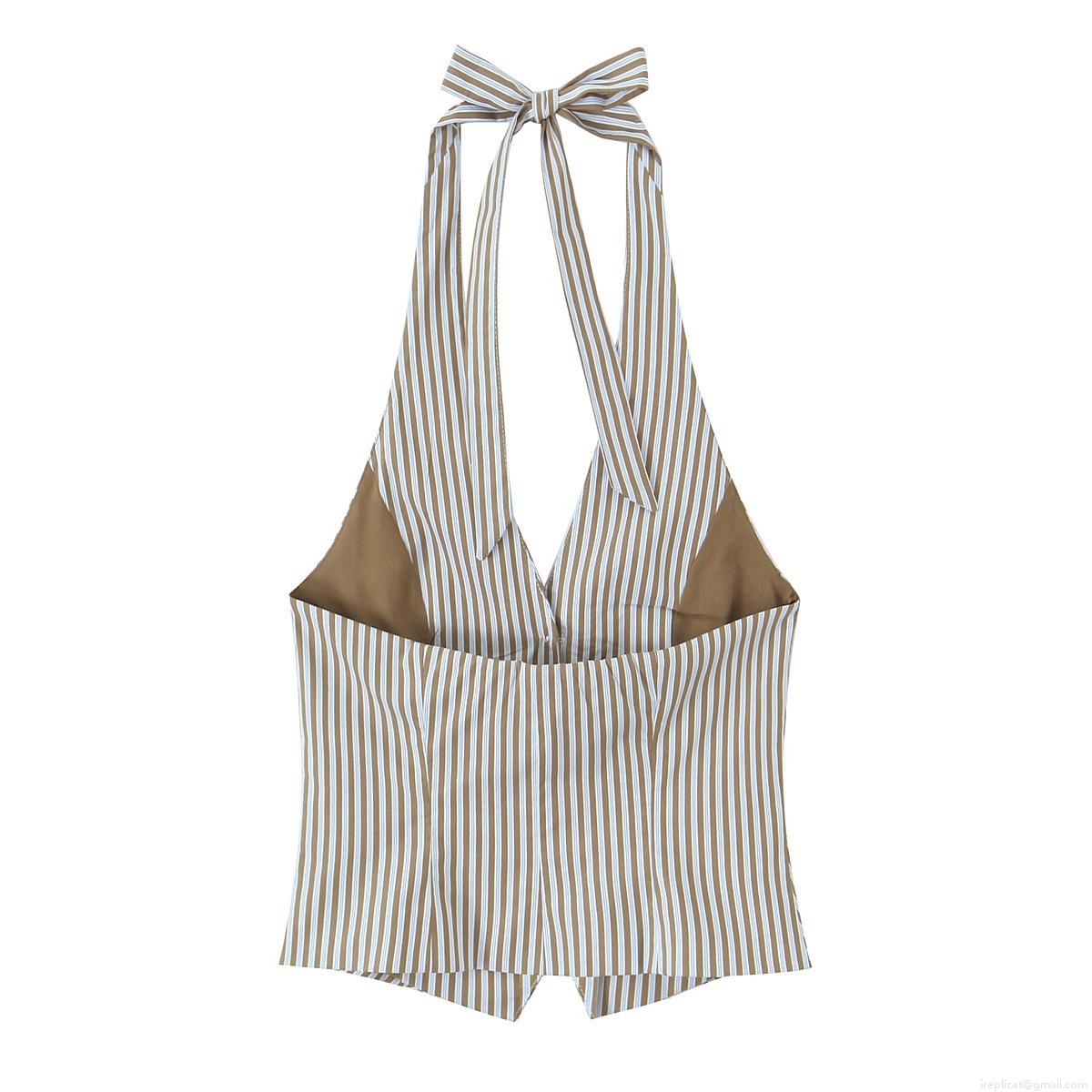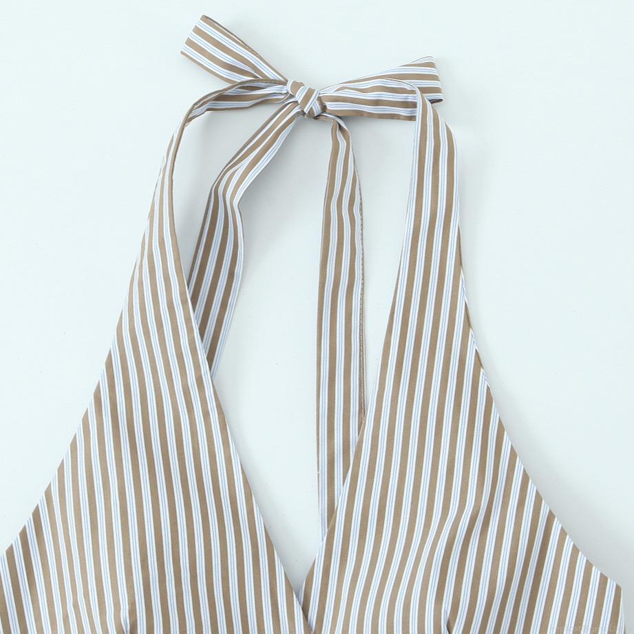 Stripe, Vertical Stripes, Neckband, Backless, Button Decoration, Swallowtail