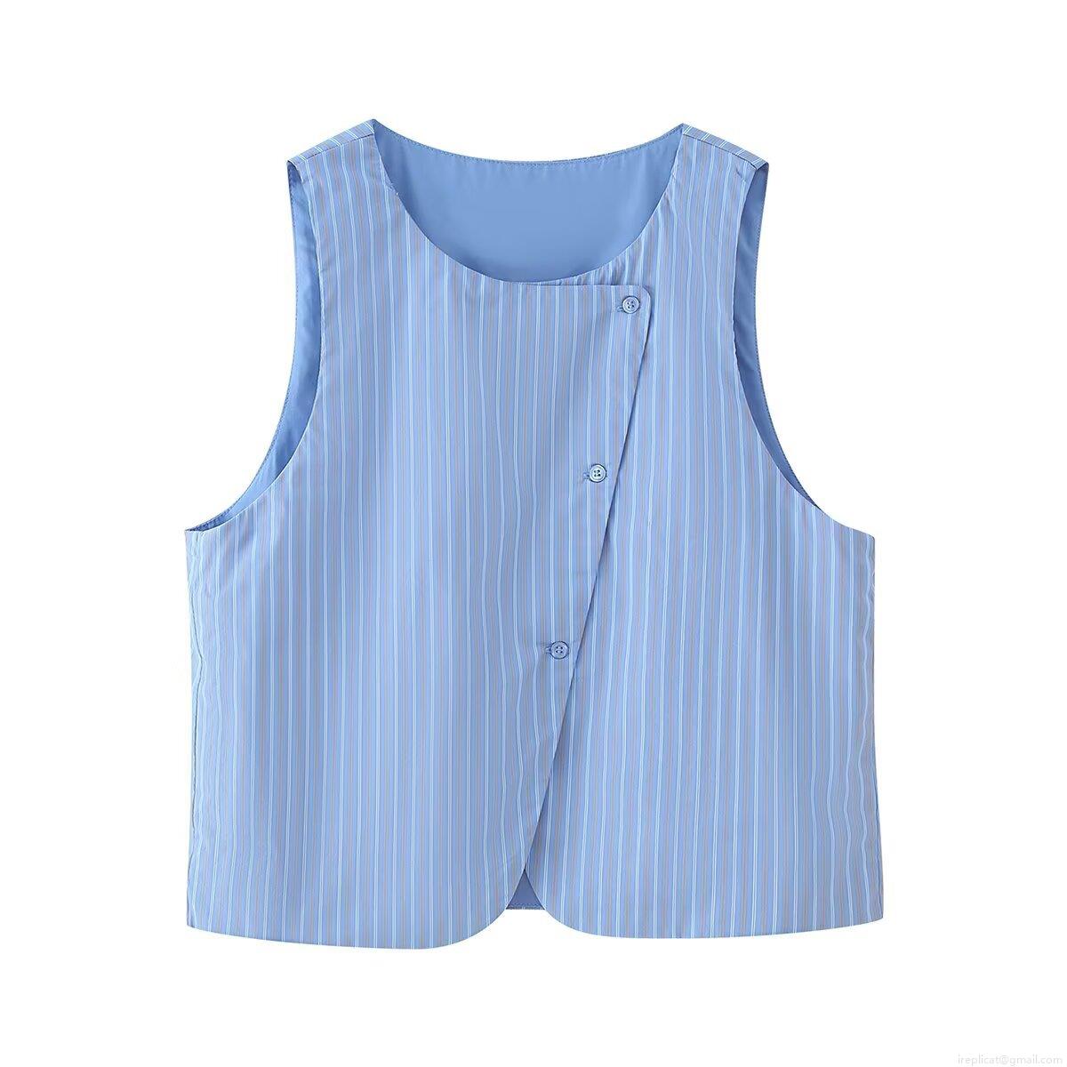 • Women's Striped 2 Piece Pant Sets Sleeveless Button Down Vest And High Waisted Elastic Long Pants Outfits Summer Casual Streetwear Suit